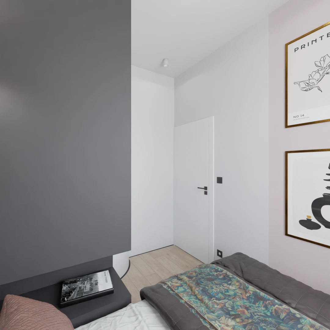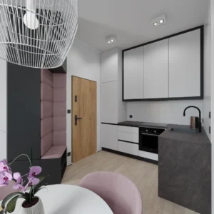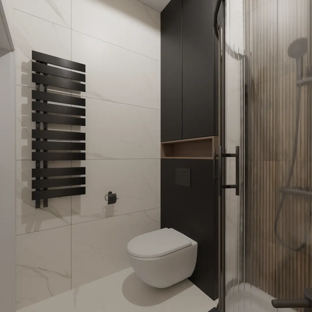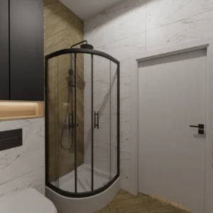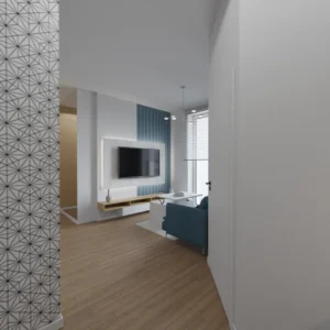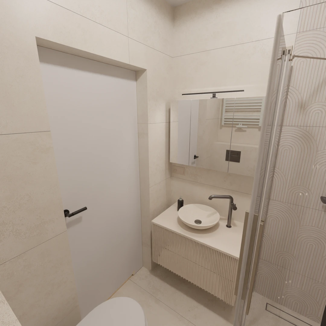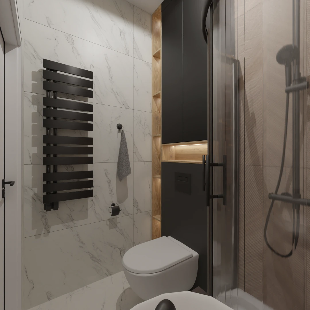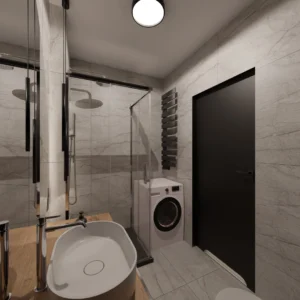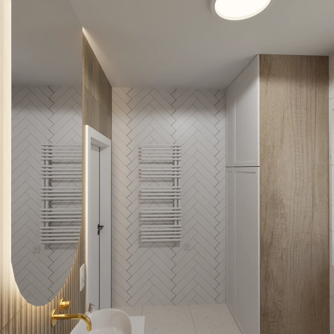 Projekt mieszkania 44m2 obejmował Zmiana układu funkcjonalnego + lifting łazienki z zachowaniem płytek w łazience i części wyposażenia