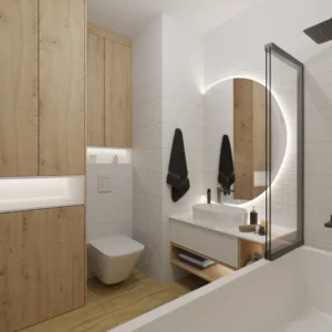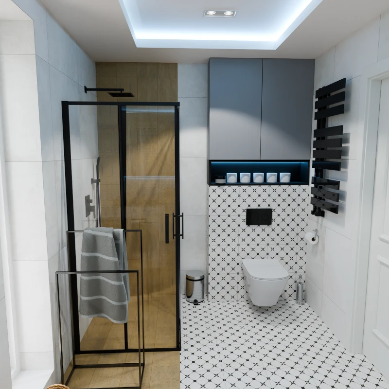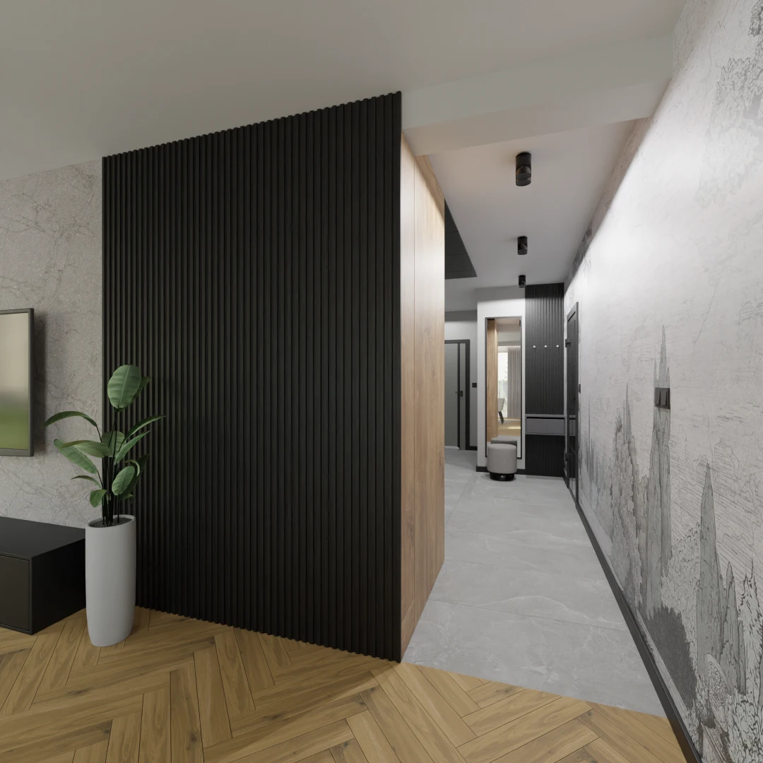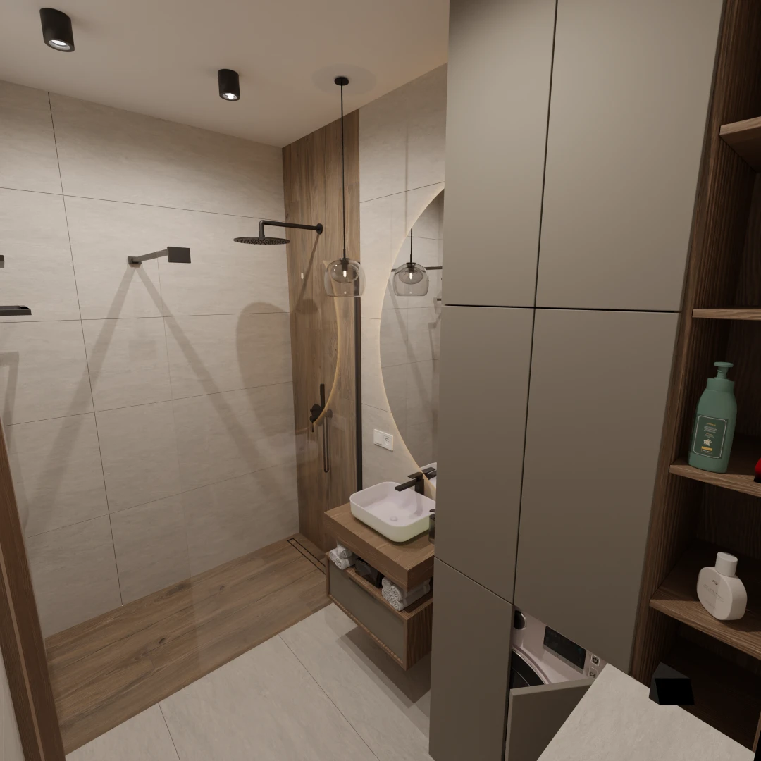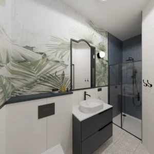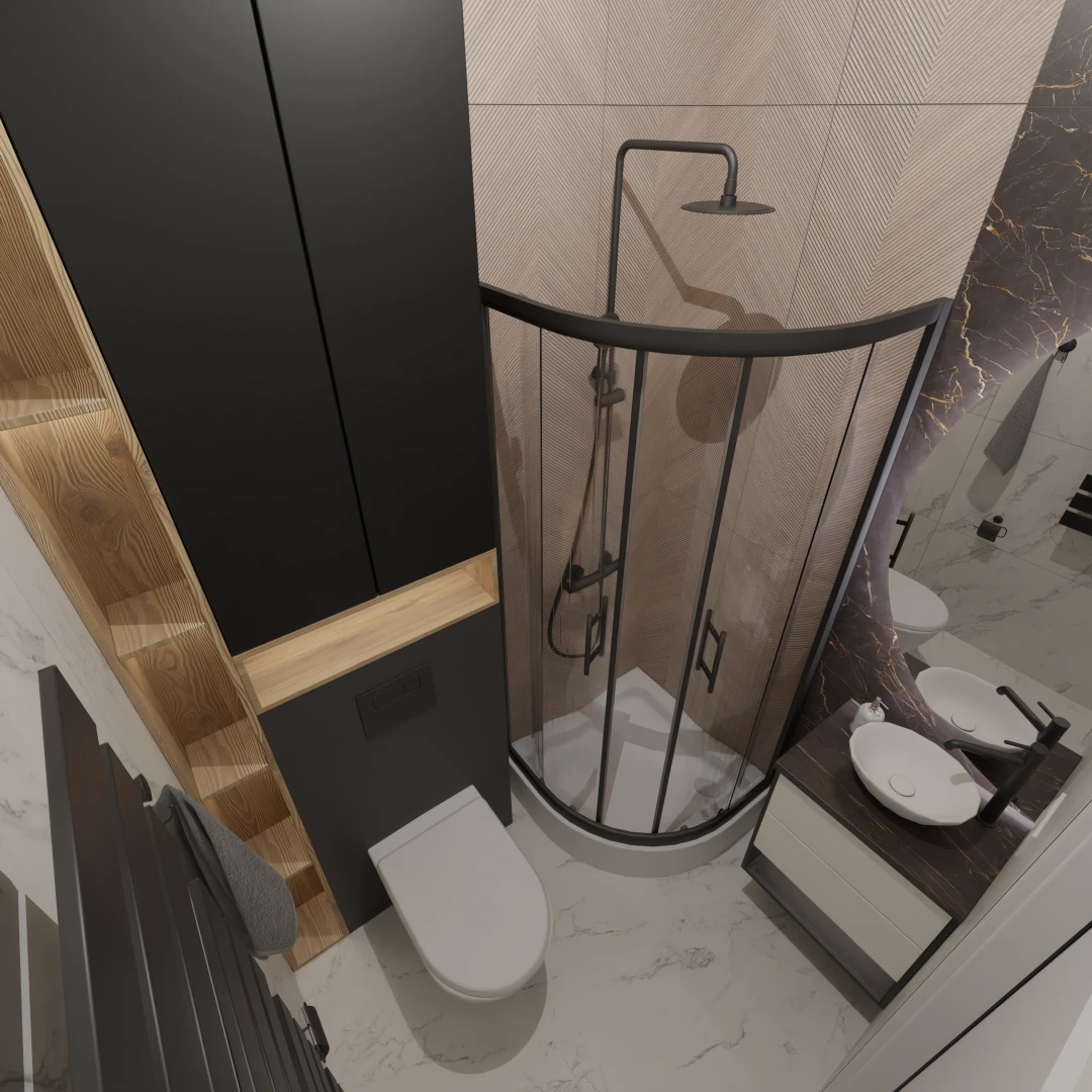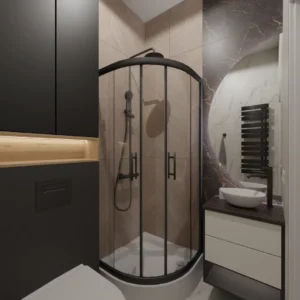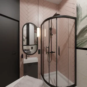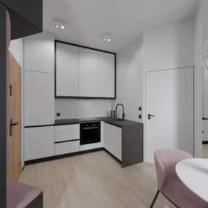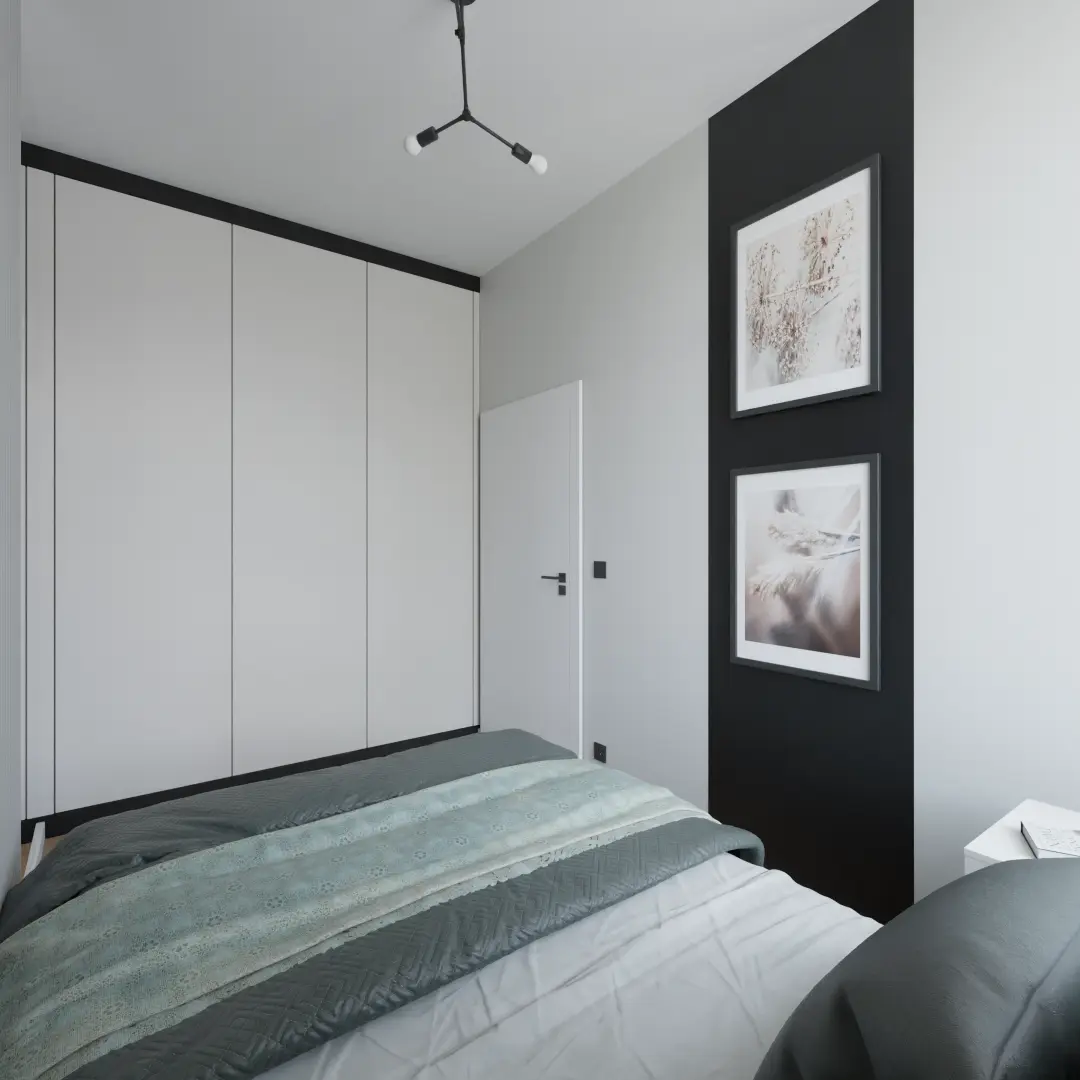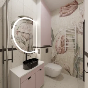 Projekt mieszkania 44m2 obejmował Zmiana układu funkcjonalnego + lifting łazienki z zachowaniem płytek w łazience i części wyposażenia
