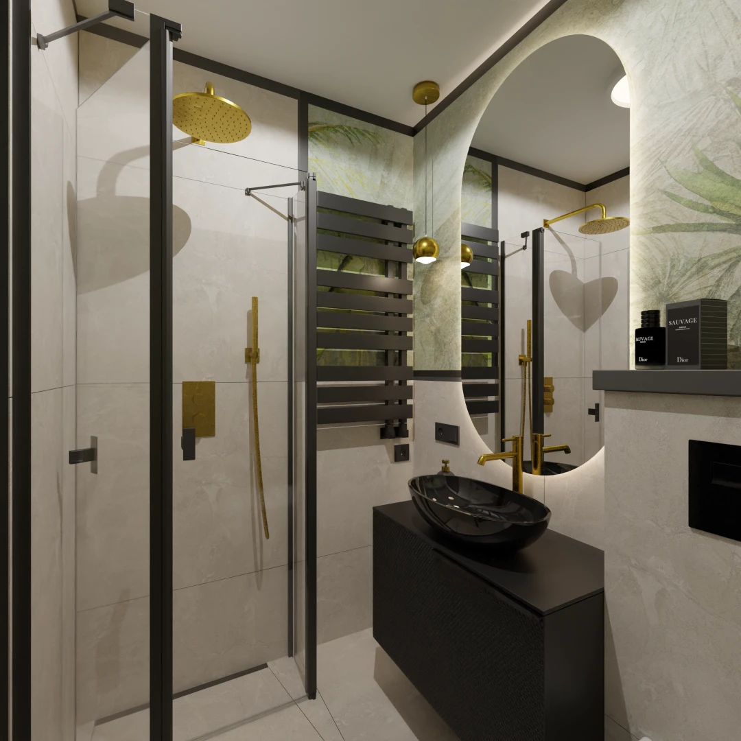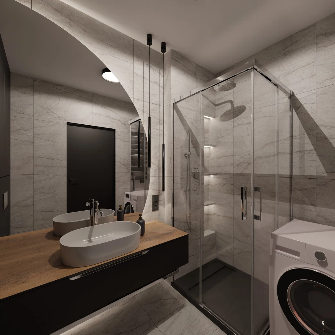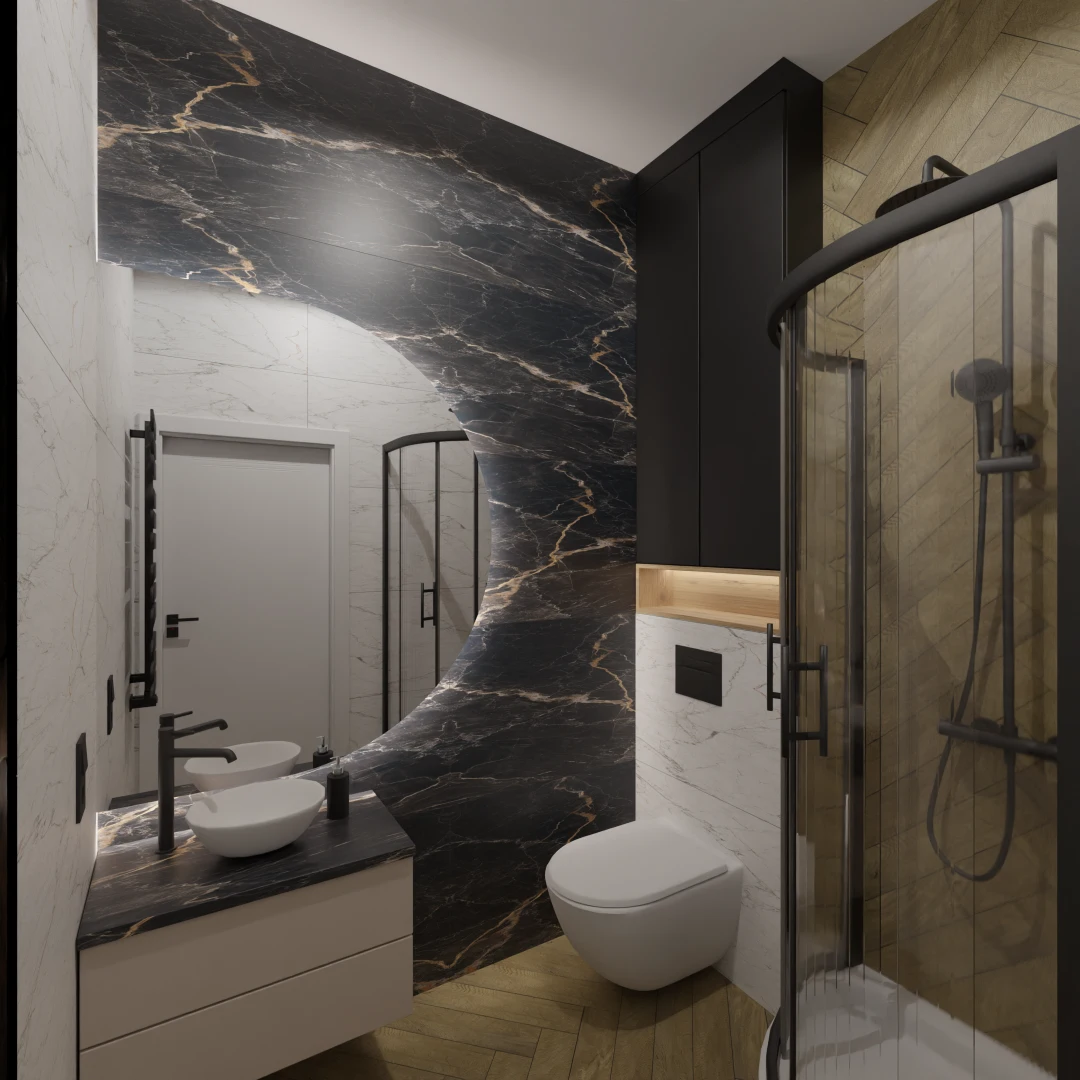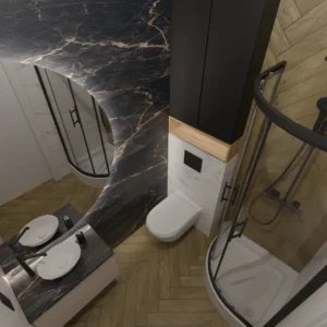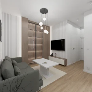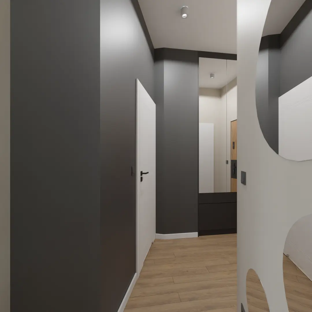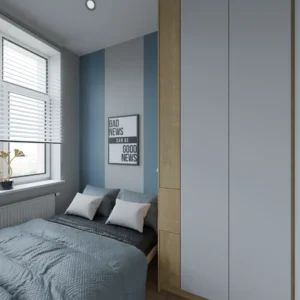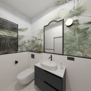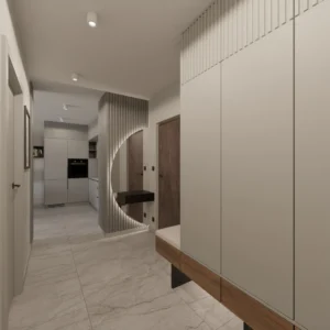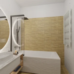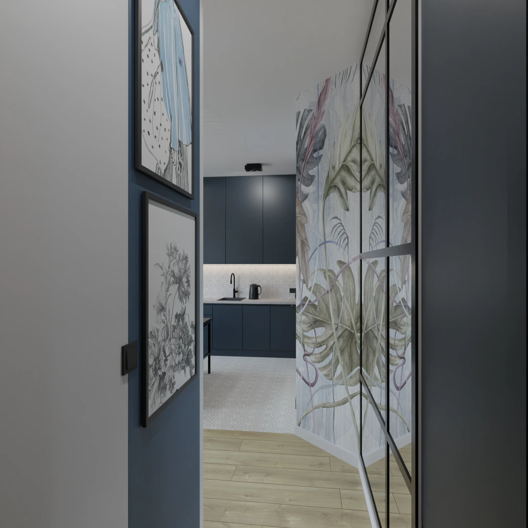Projekt mieszkania 44m2 obejmował Zmiana układu funkcjonalnego + lifting łazienki z zachowaniem płytek w łazience i części wyposażenia