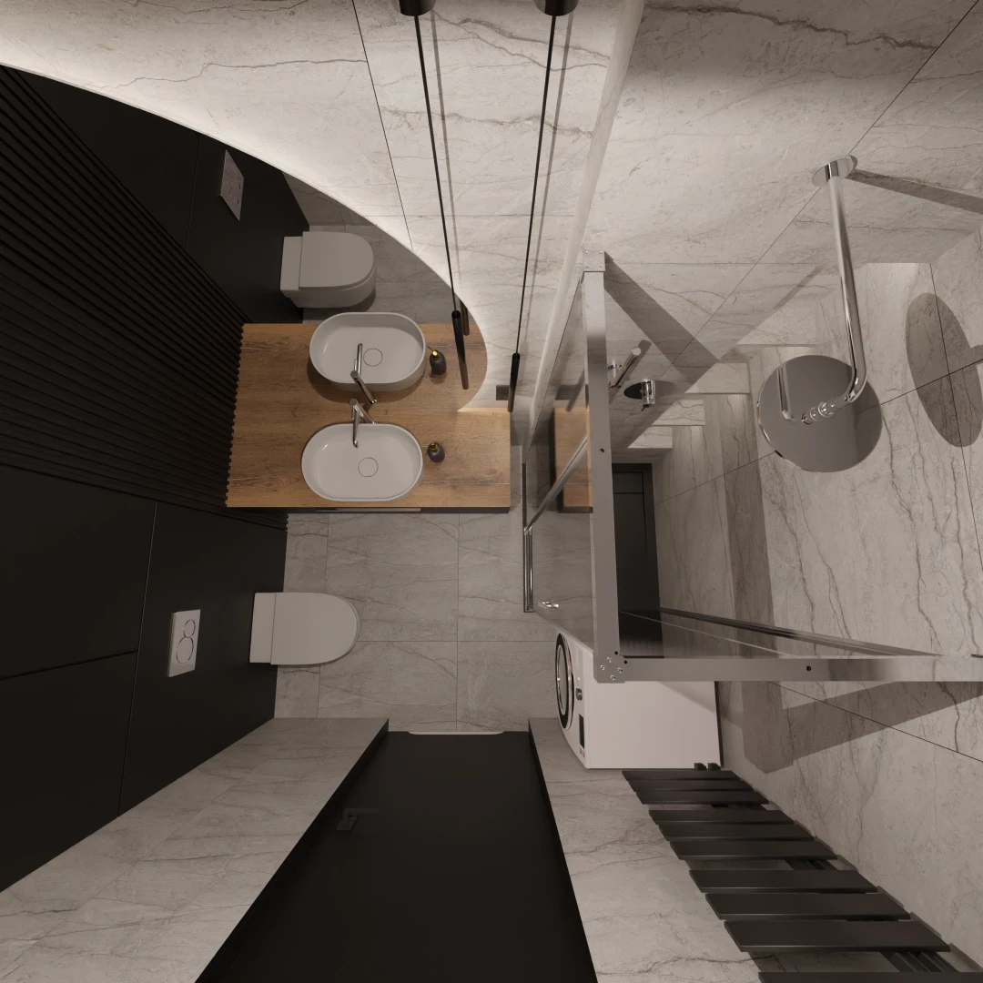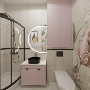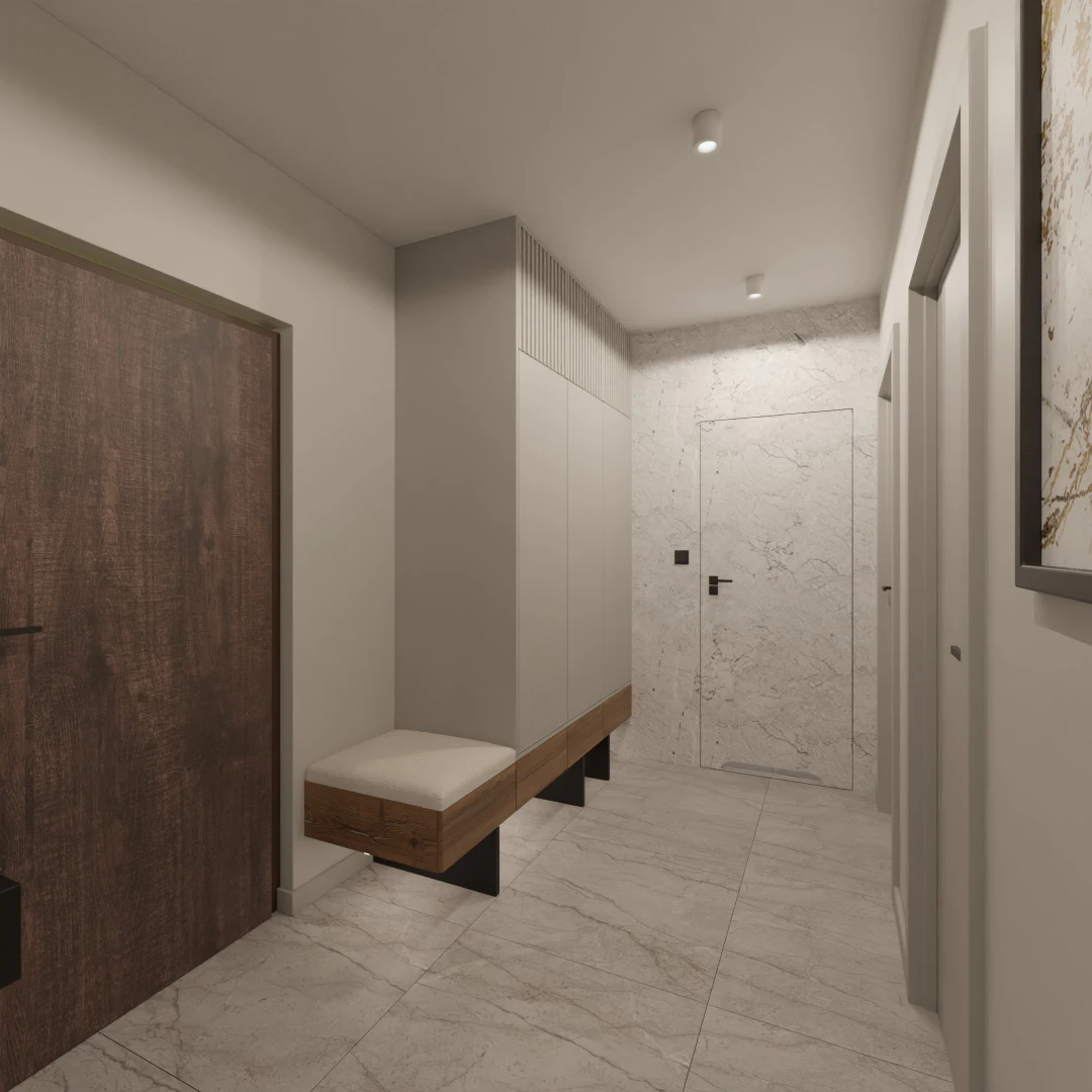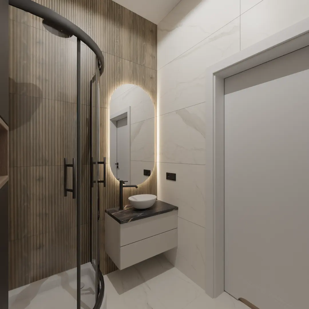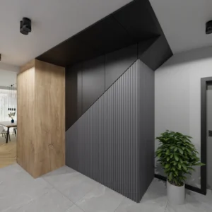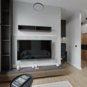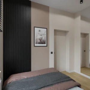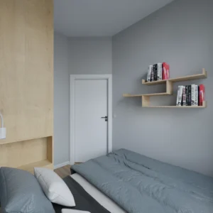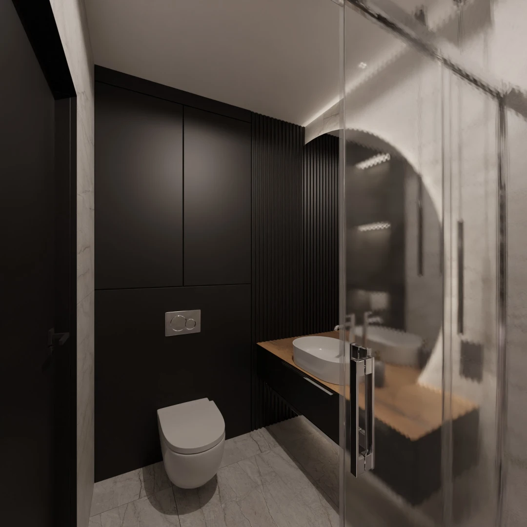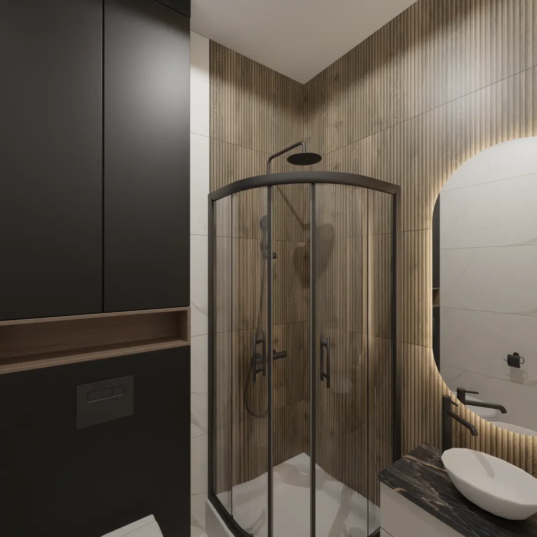 Projekt mieszkania 44m2 obejmował Zmiana układu funkcjonalnego + lifting łazienki z zachowaniem płytek w łazience i części wyposażenia