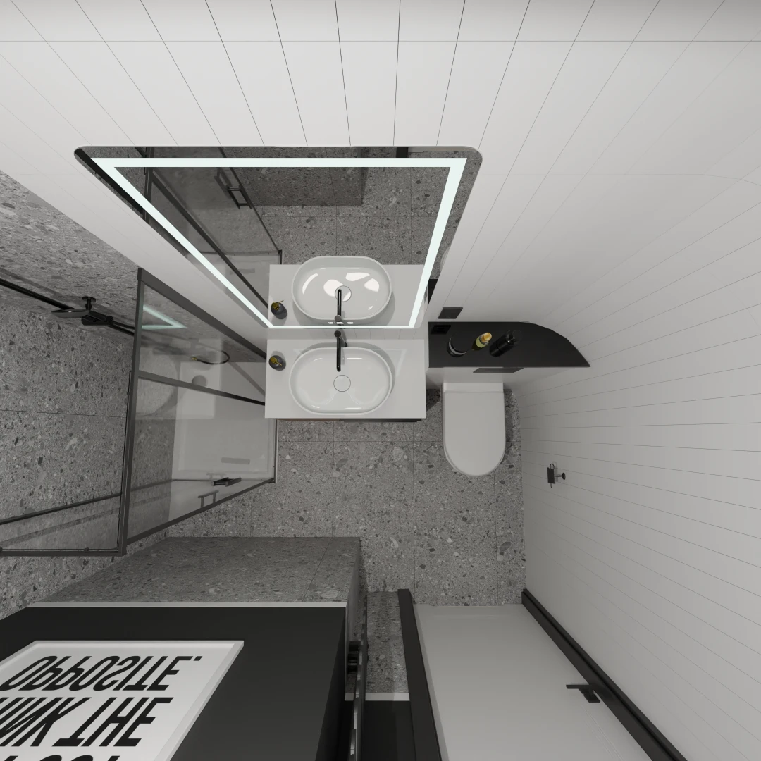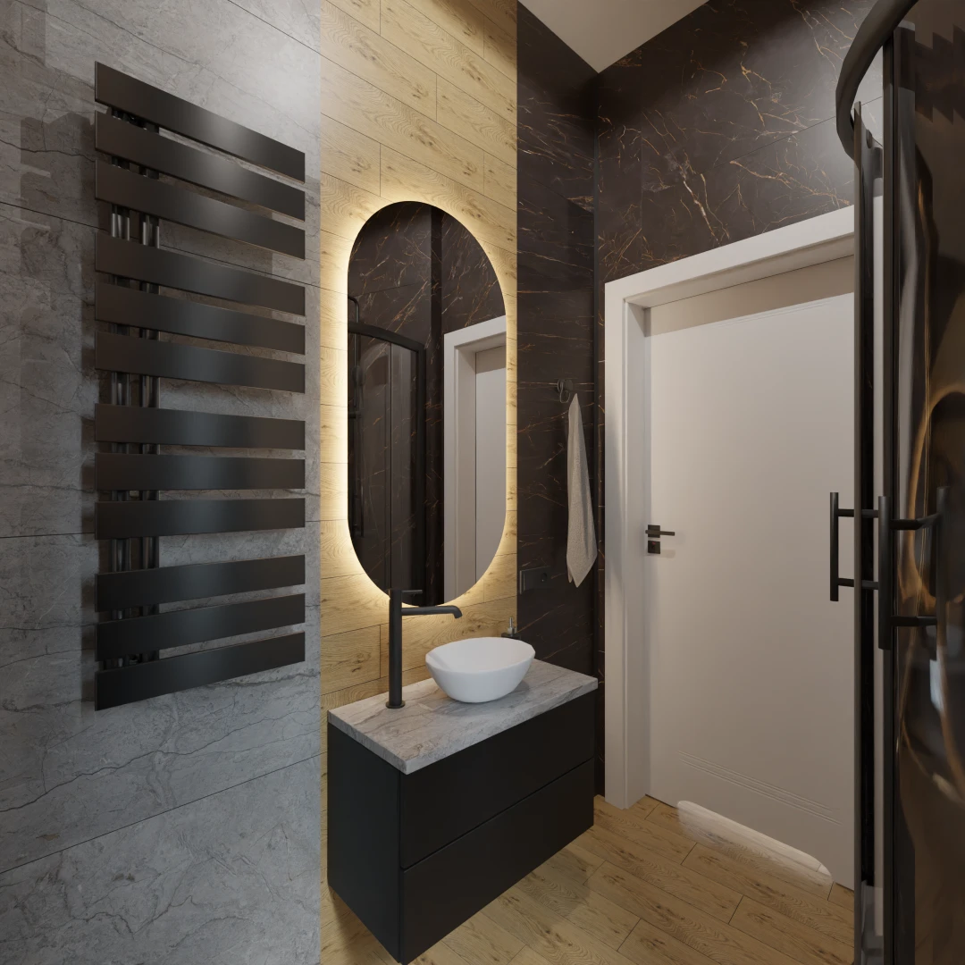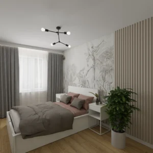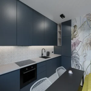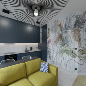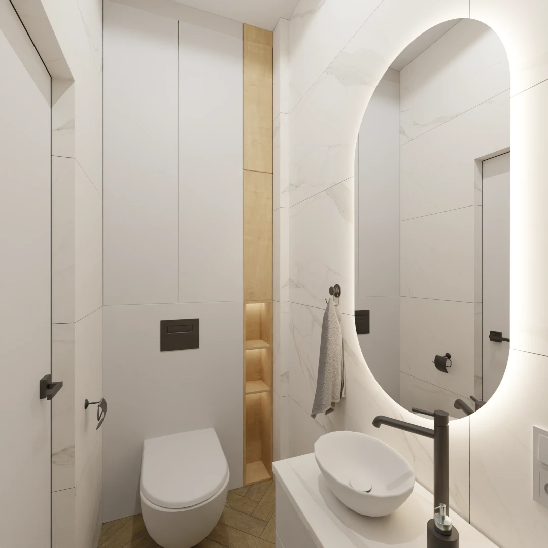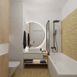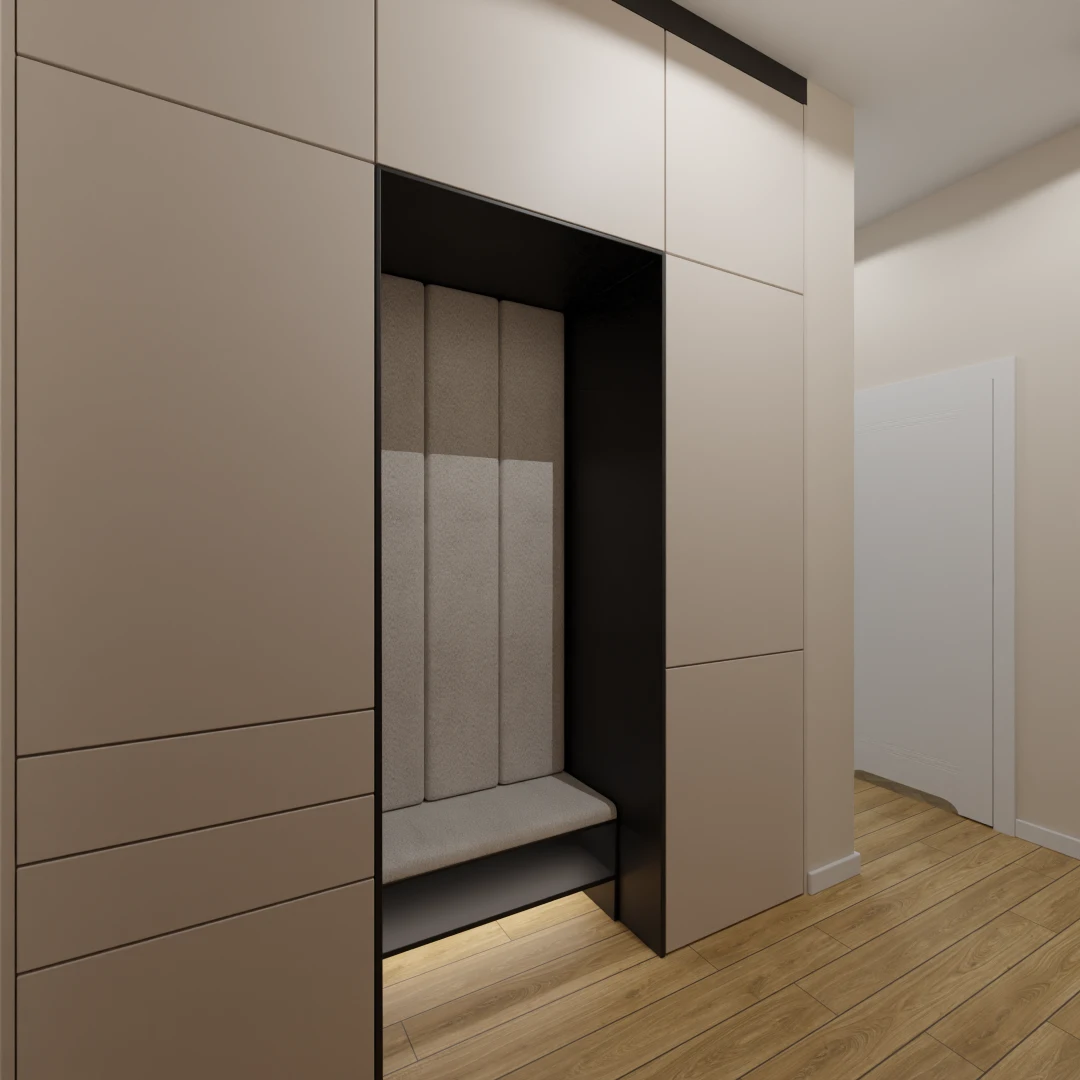 Projekt mieszkania 44m2 obejmował Zmiana układu funkcjonalnego + lifting łazienki z zachowaniem płytek w łazience i części wyposażenia
