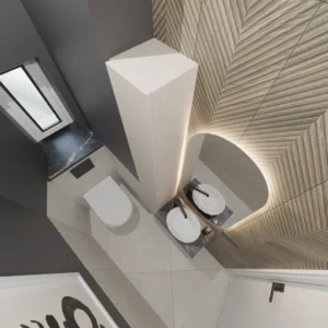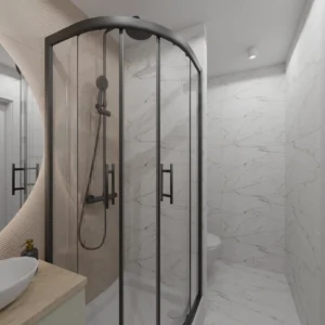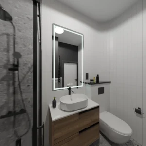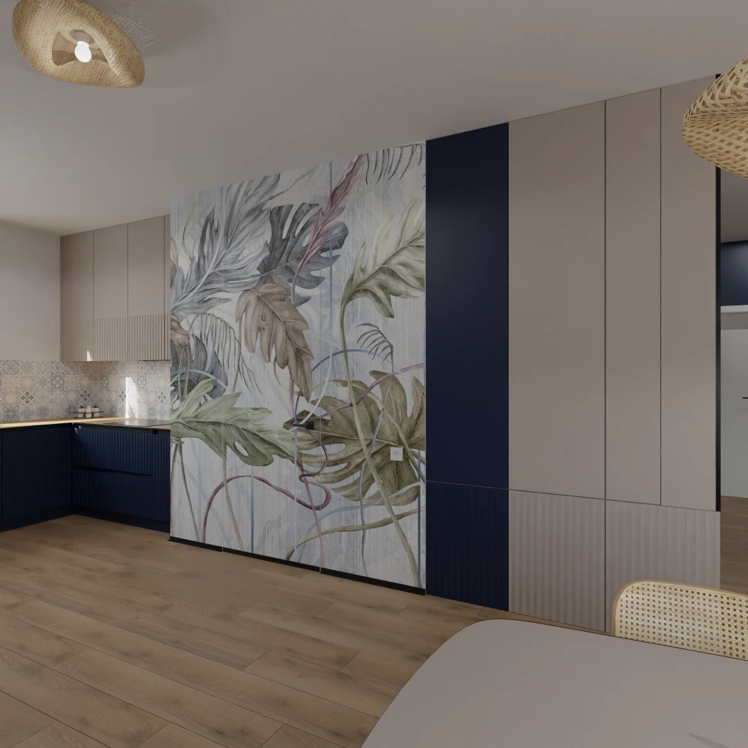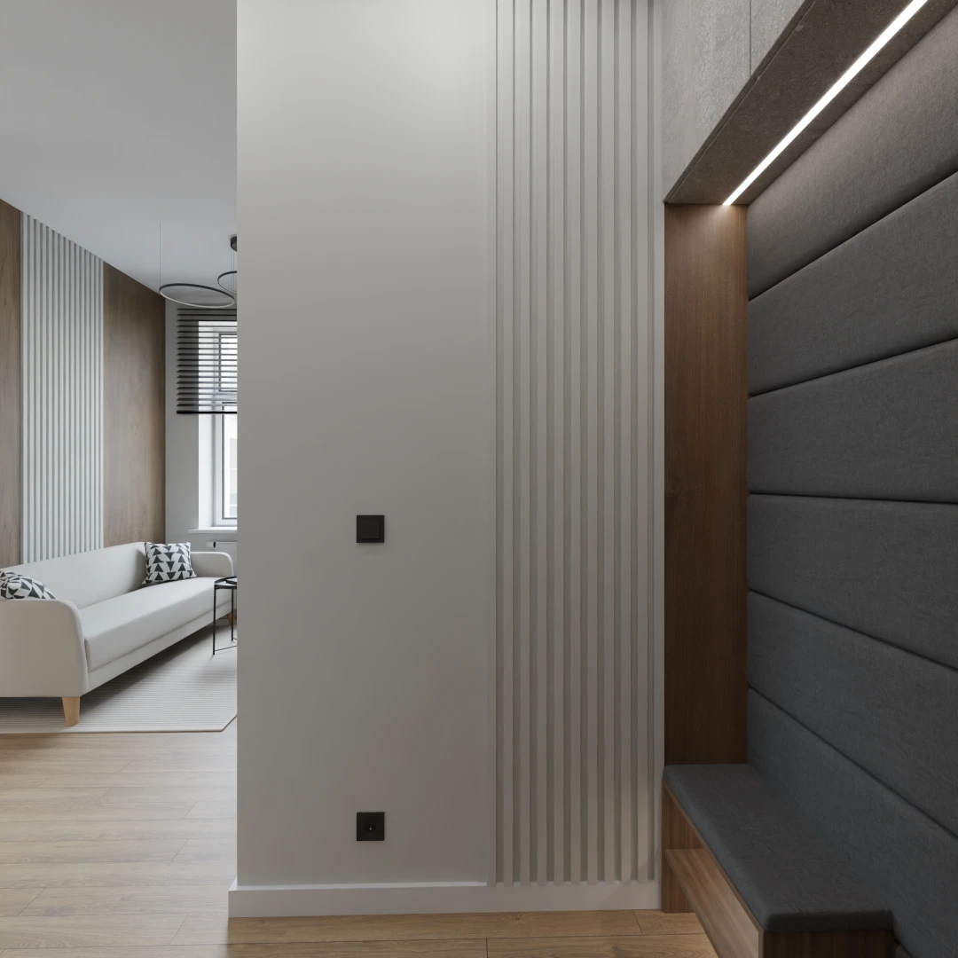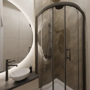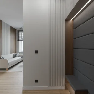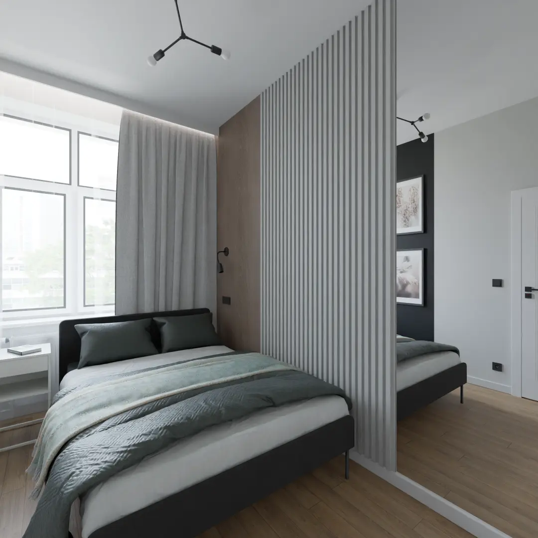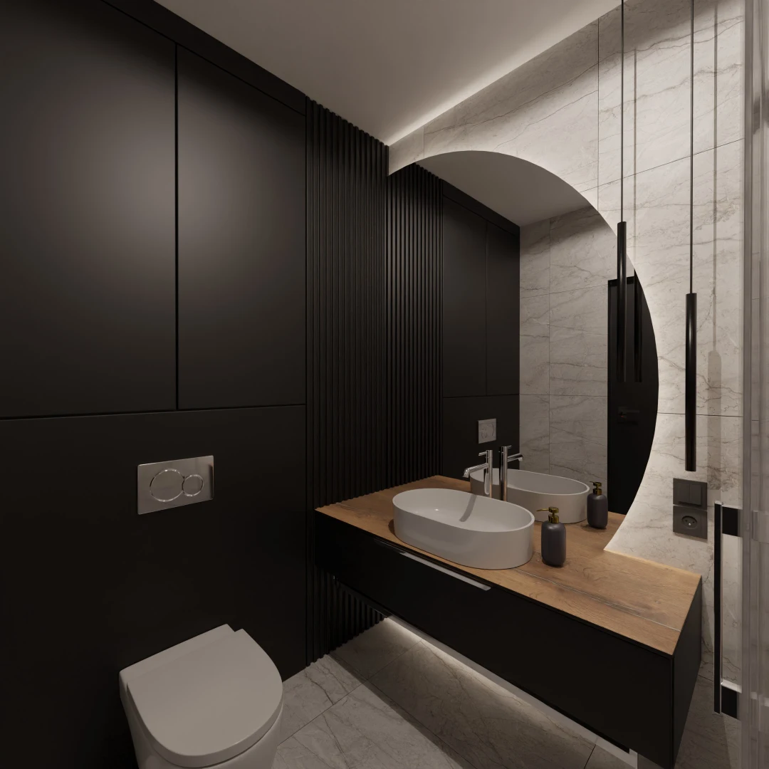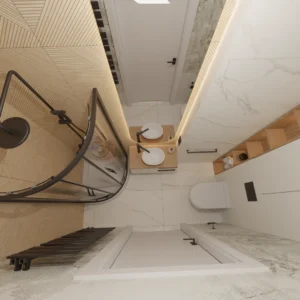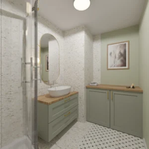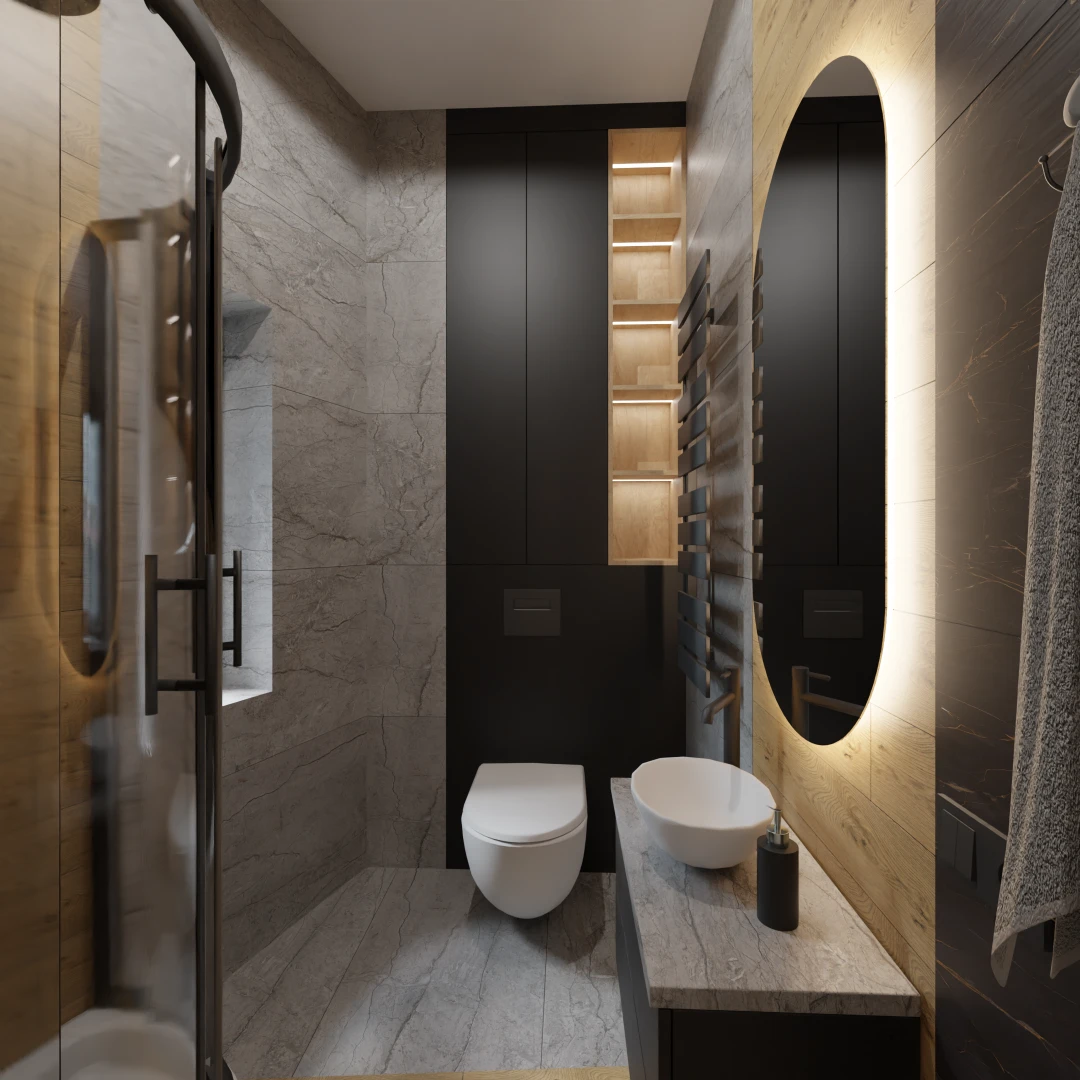 Projekt mieszkania 44m2 obejmował Zmiana układu funkcjonalnego + lifting łazienki z zachowaniem płytek w łazience i części wyposażenia