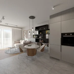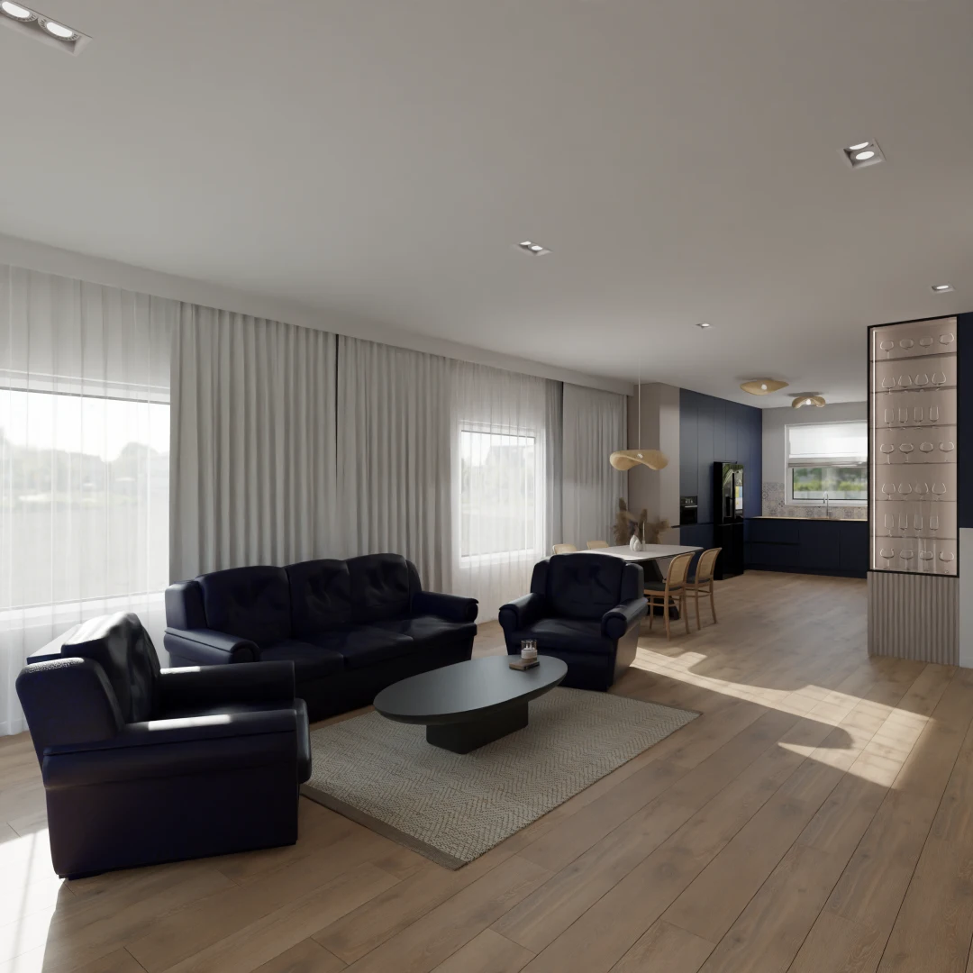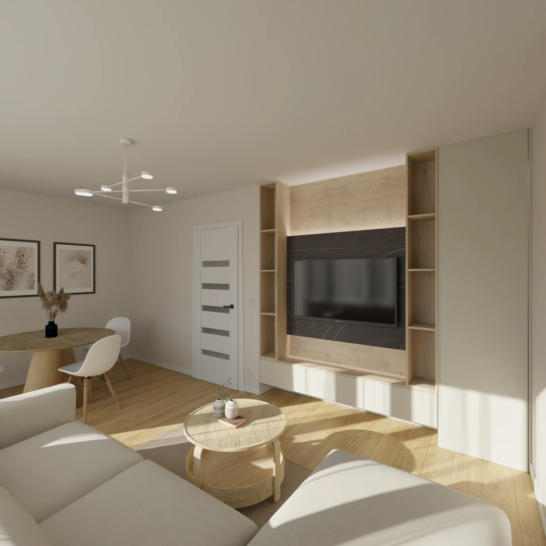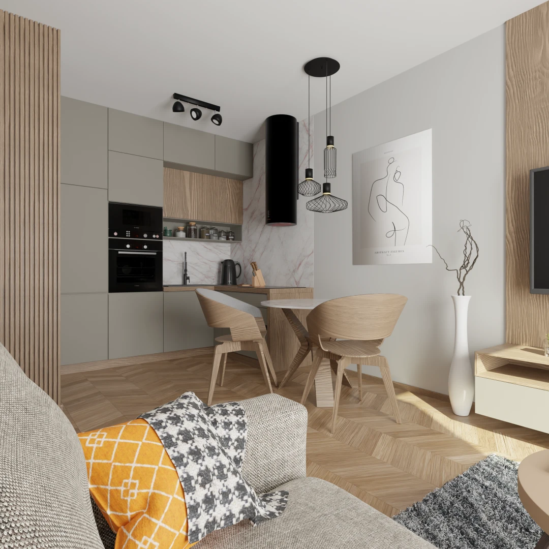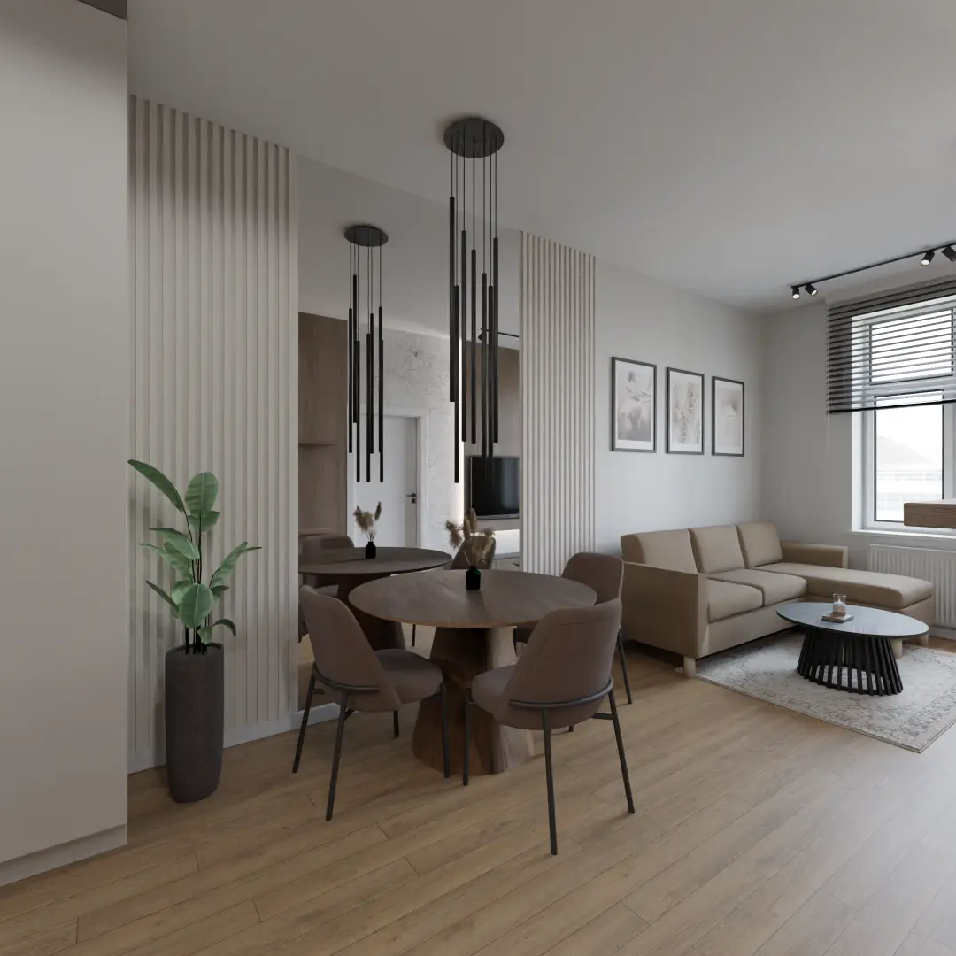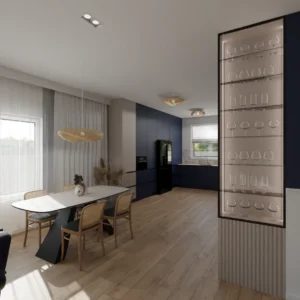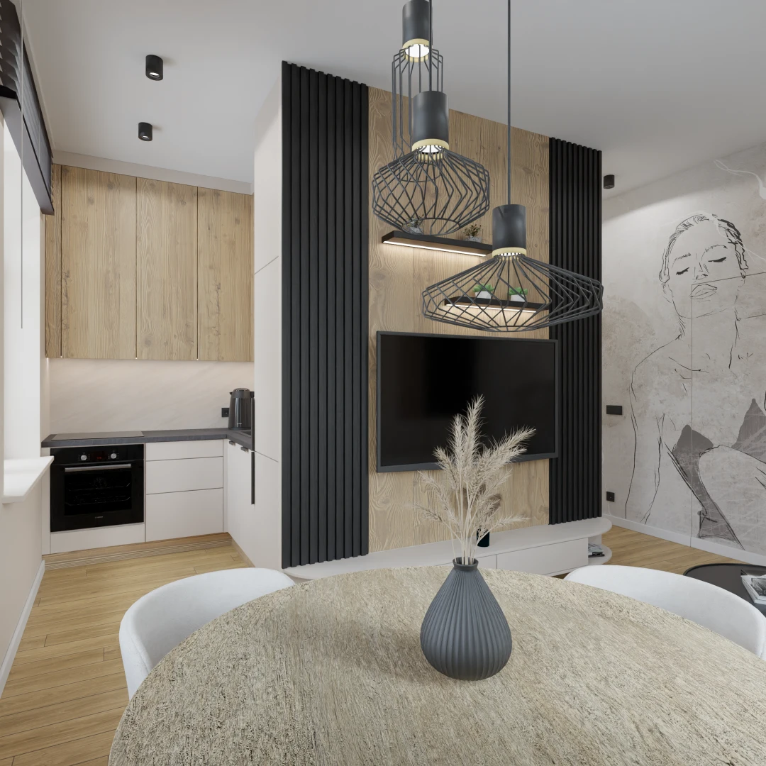 Projekt salonu z jadalnią z pozostawieniem istniejącej podłogi