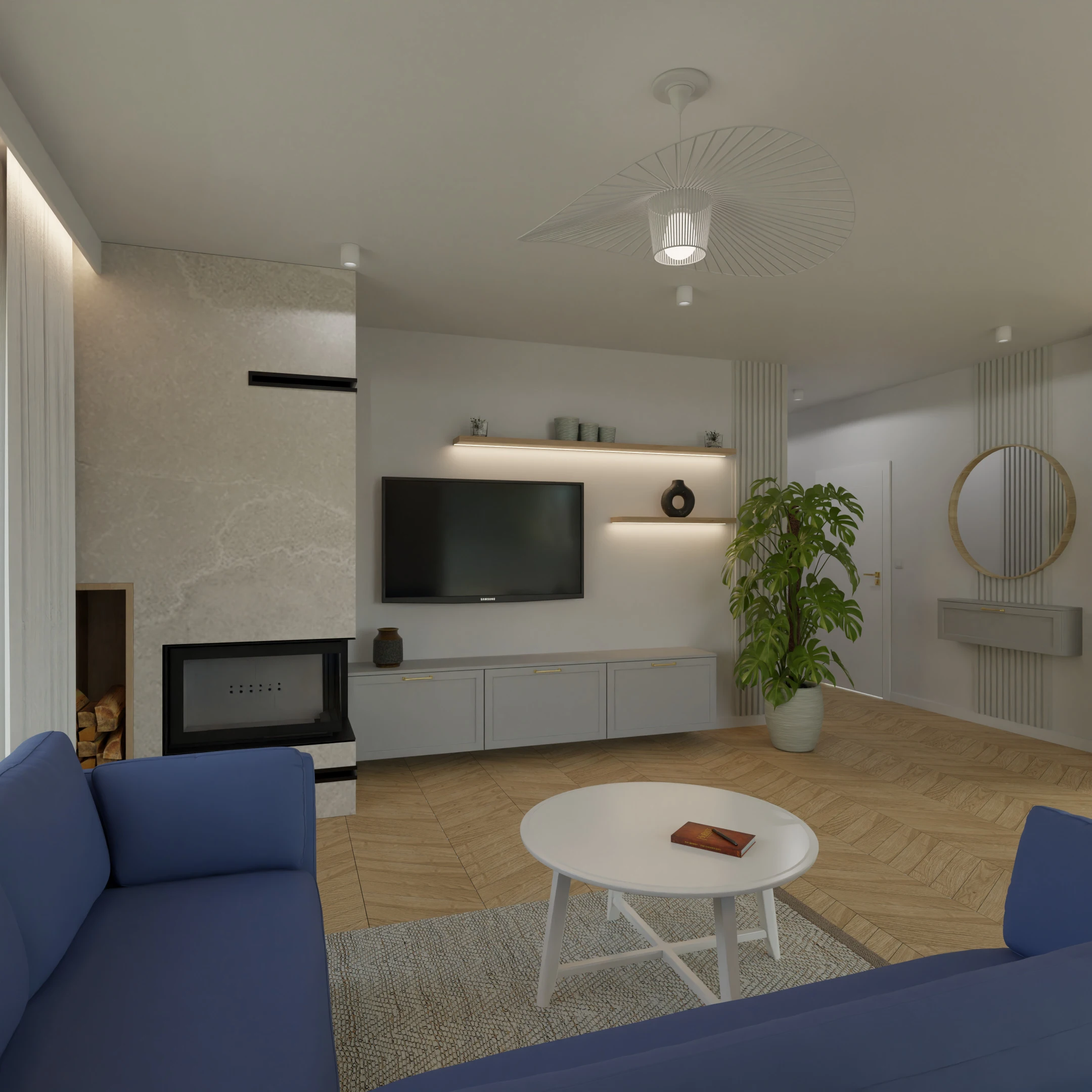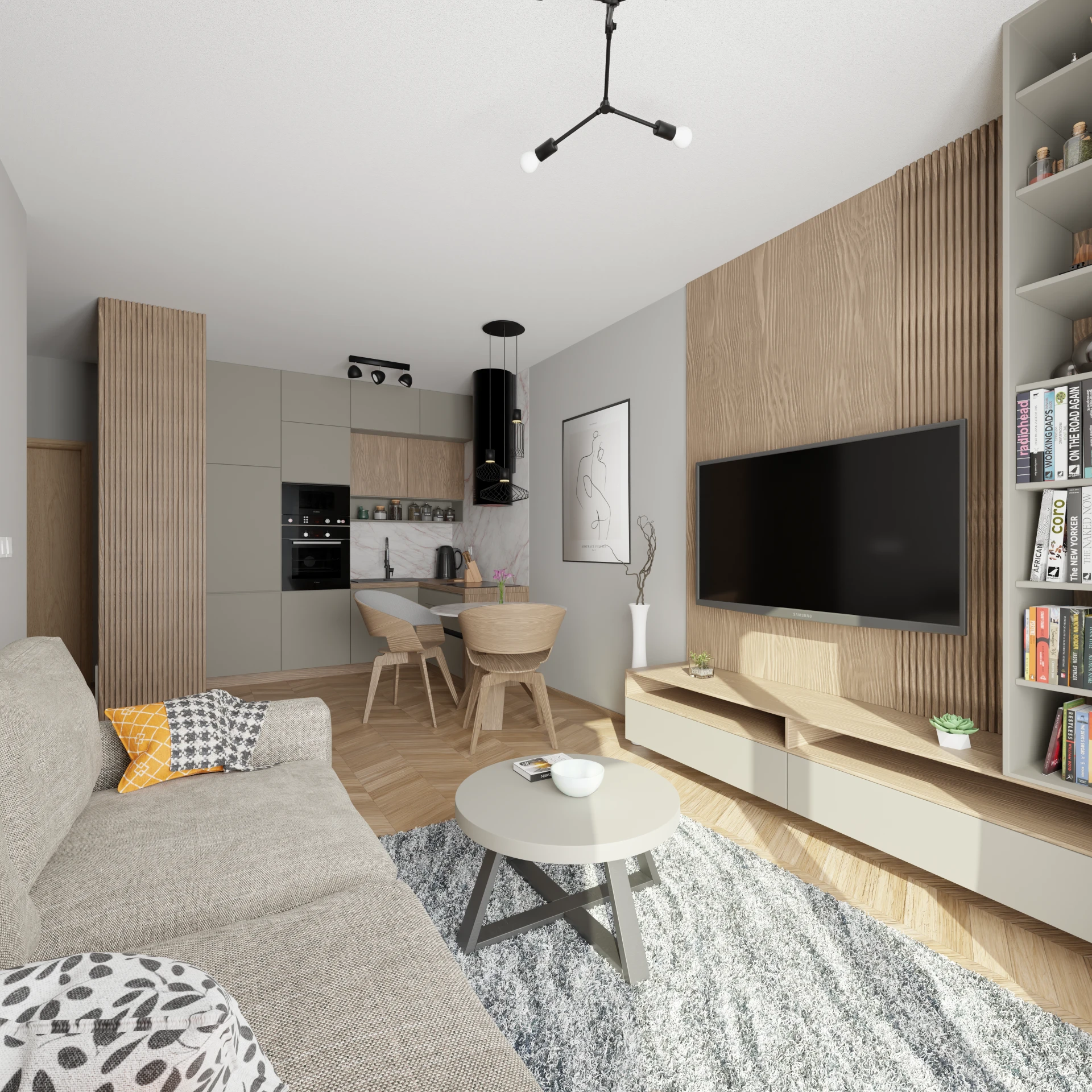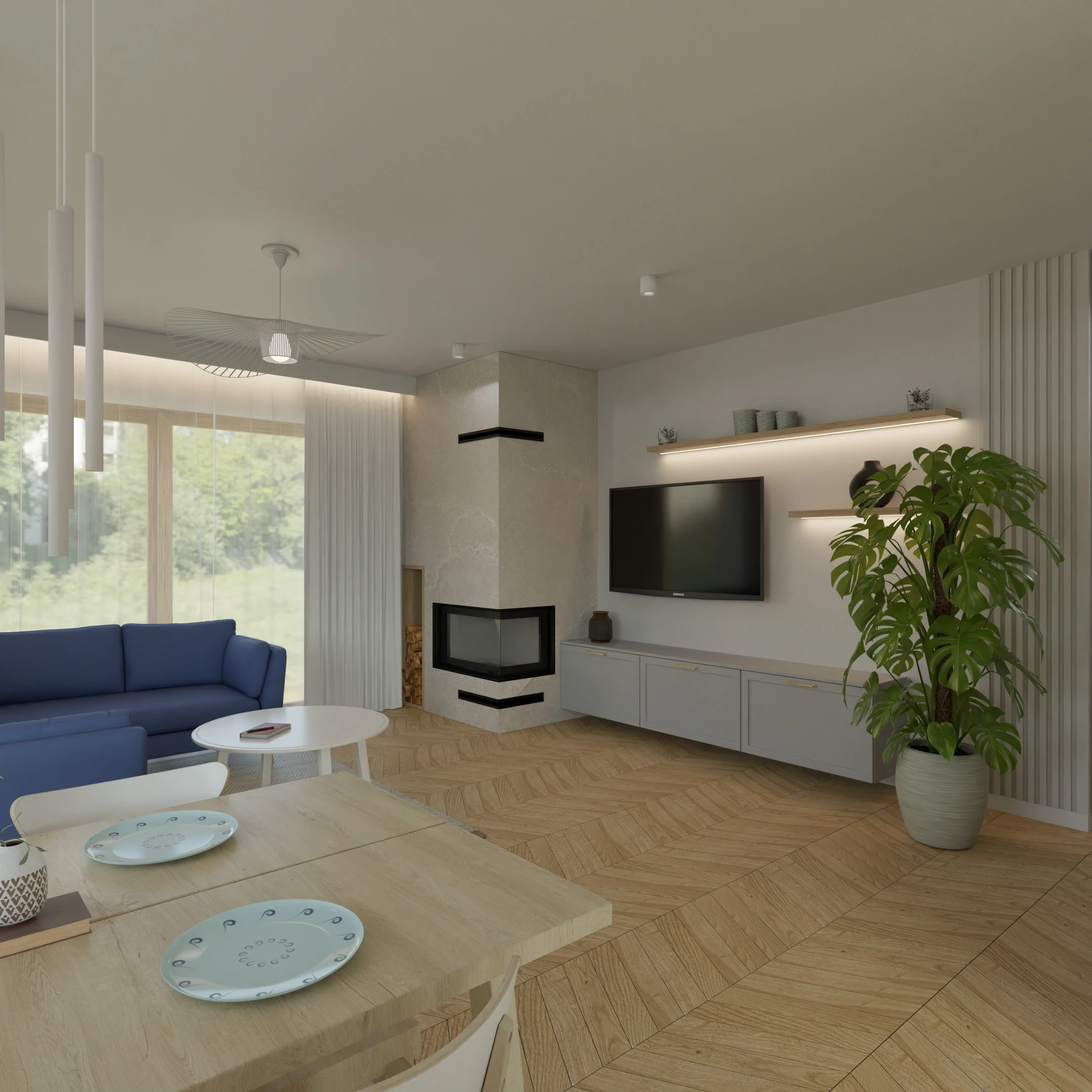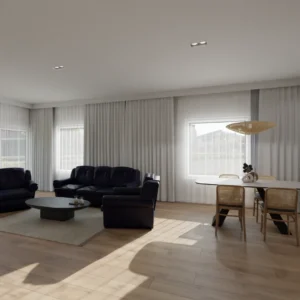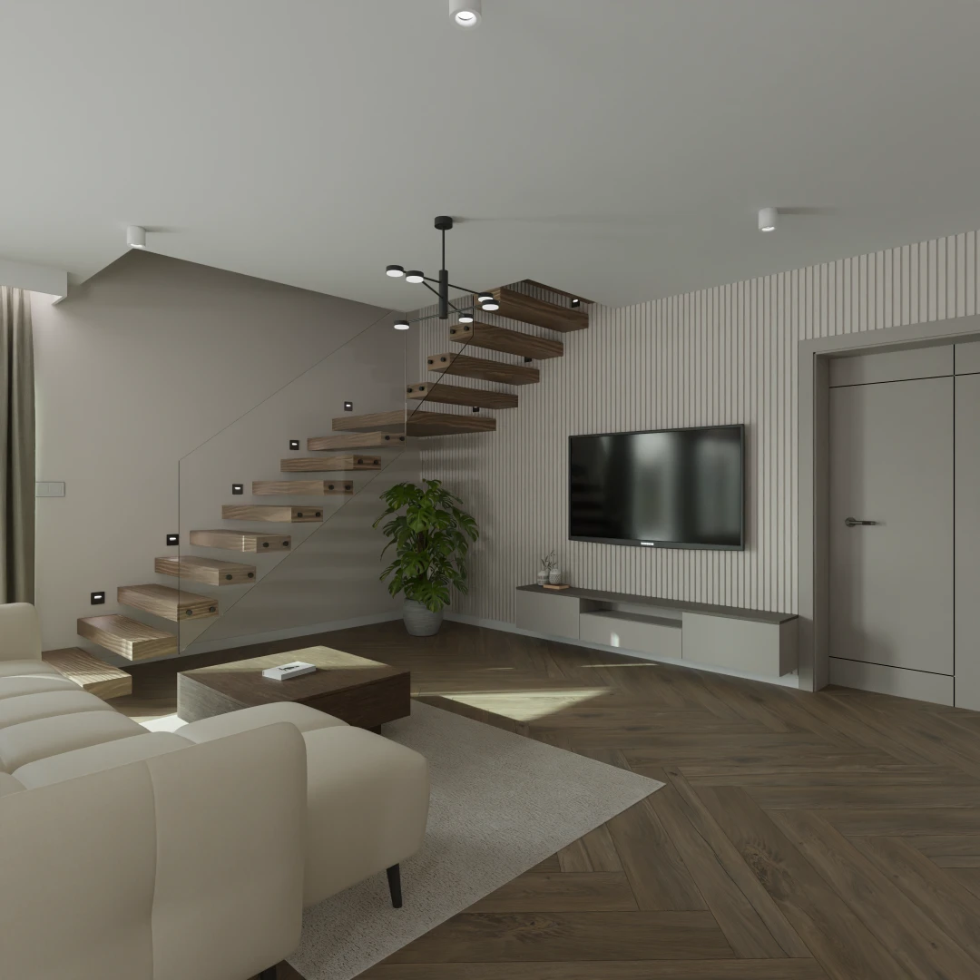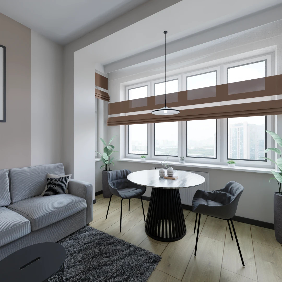 Projekt salonu z jadalnią z pozostawieniem istniejącej podłogi