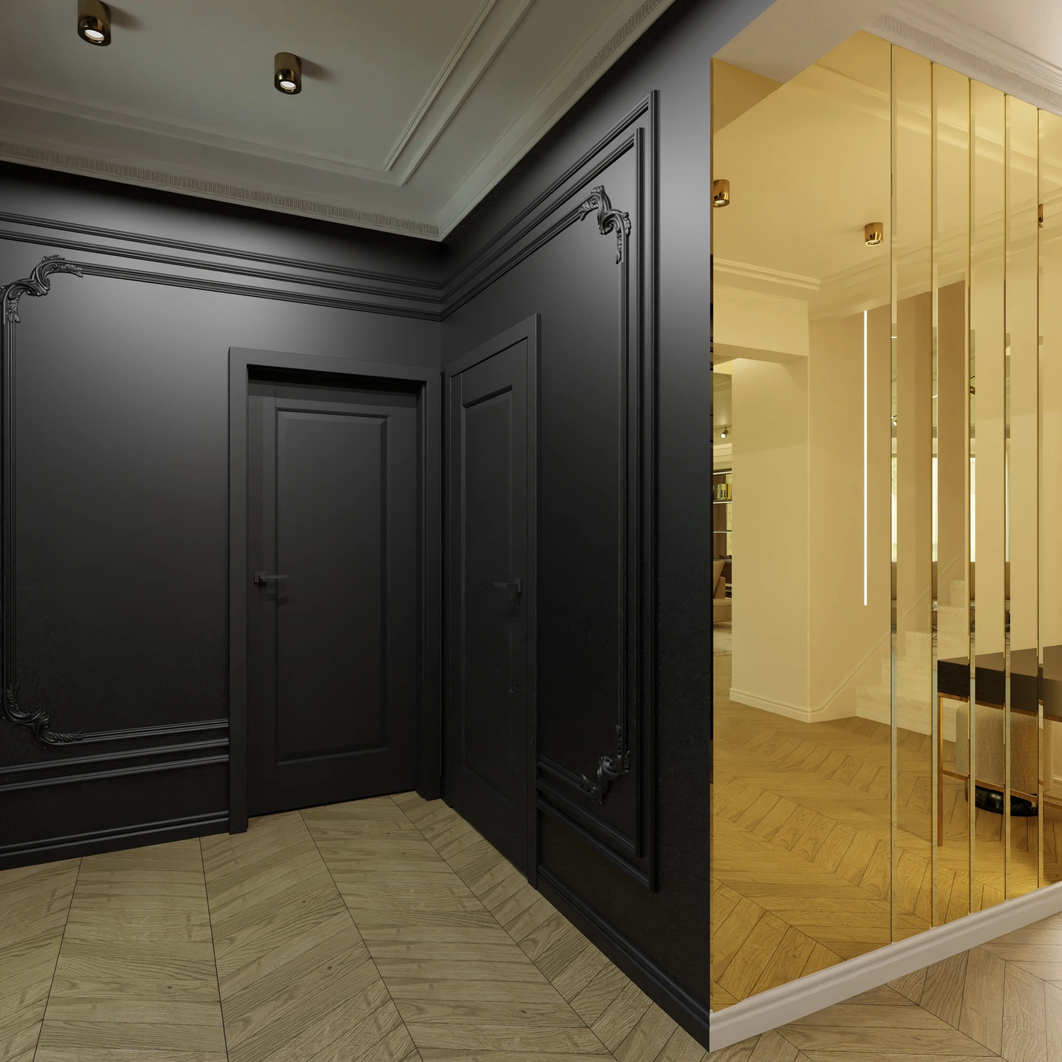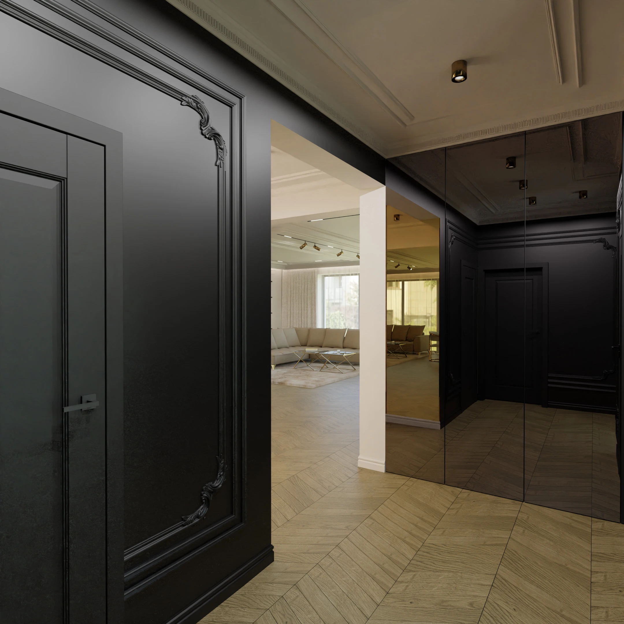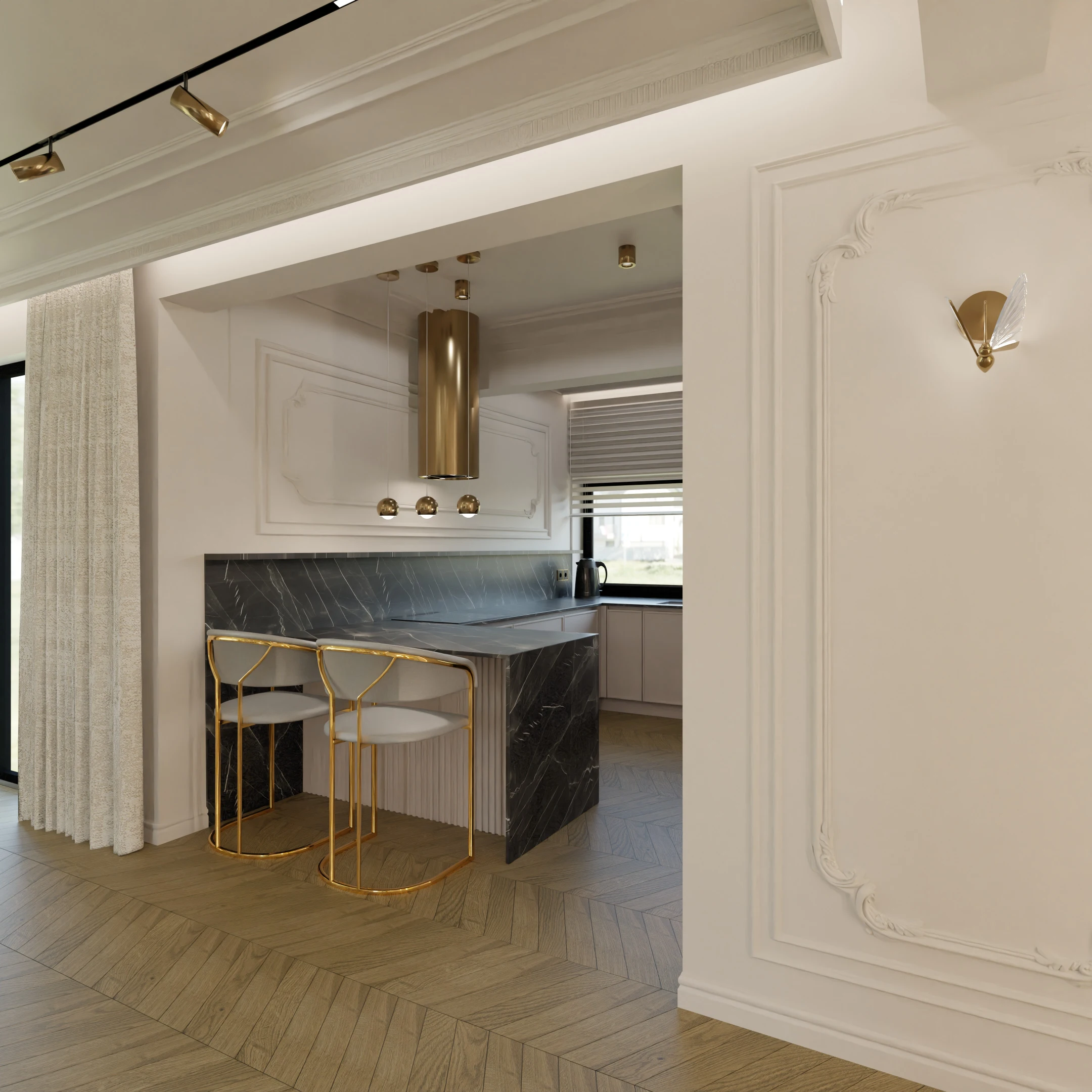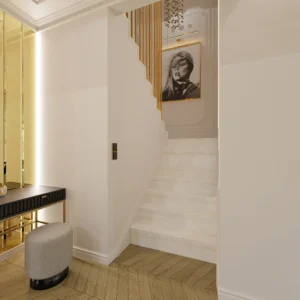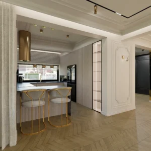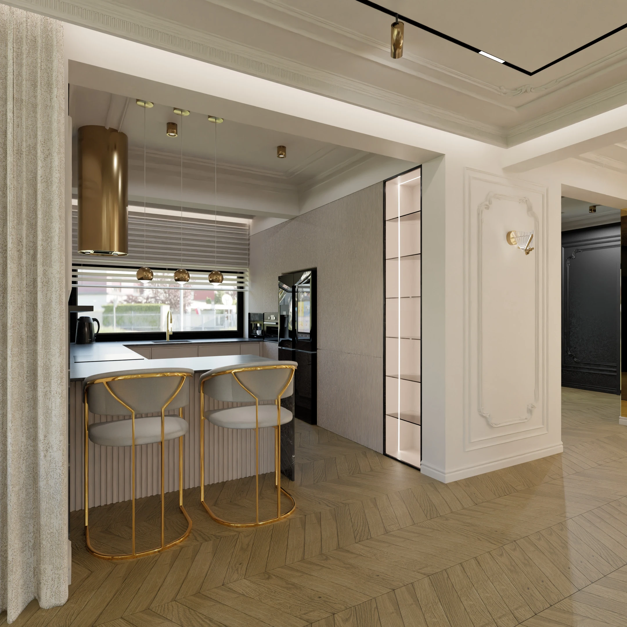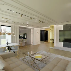 Projekt częsci domu w mieszance stylu klasycnego i glamour