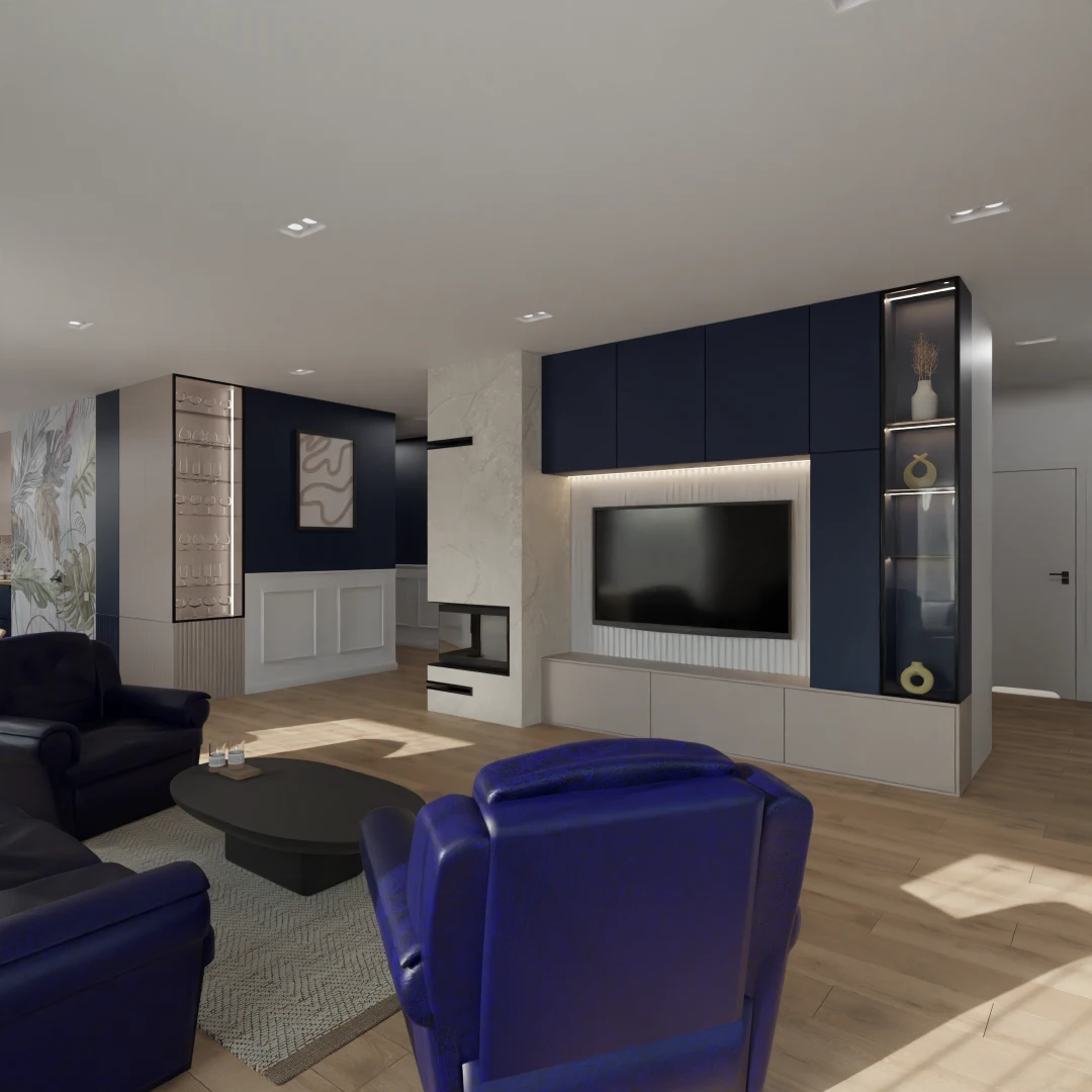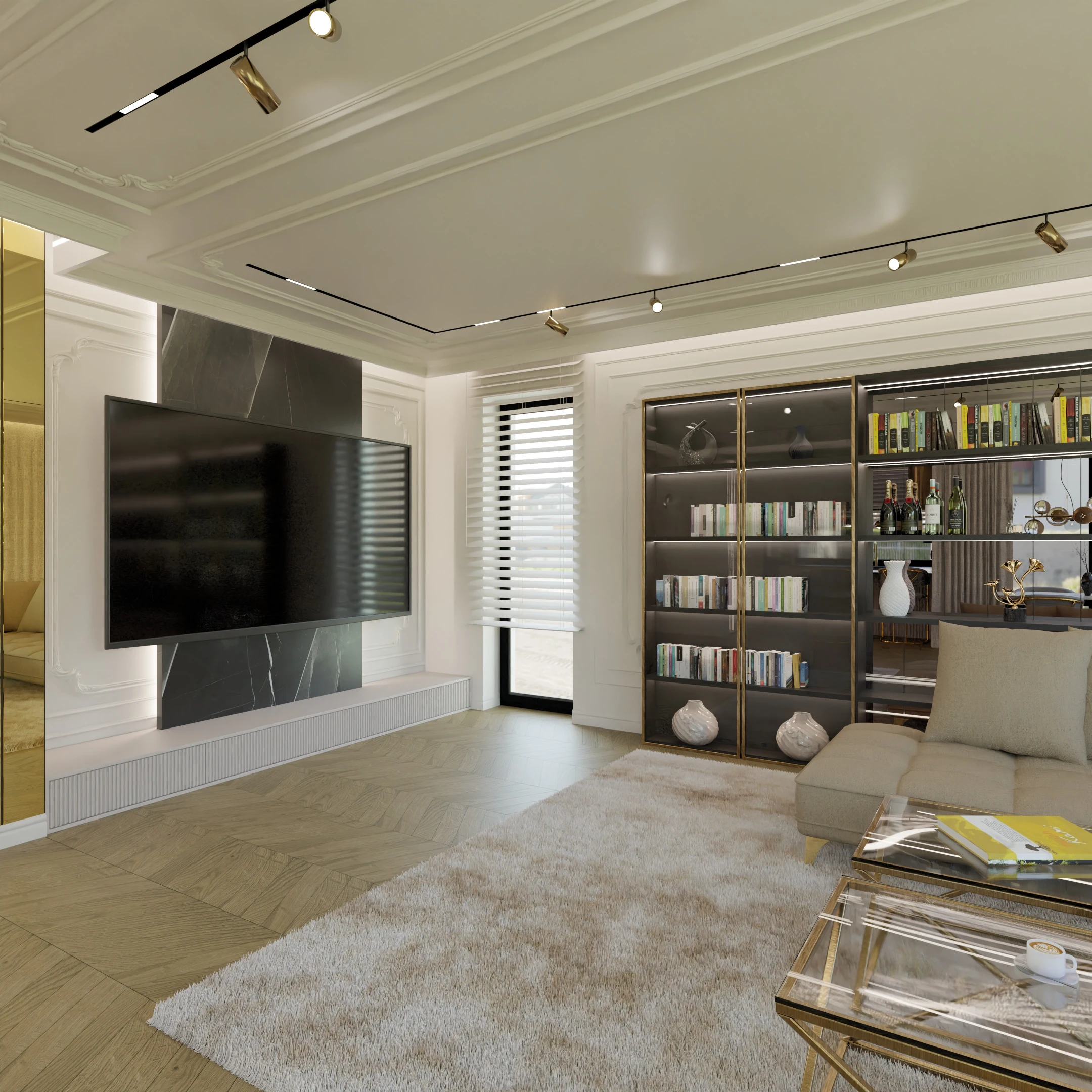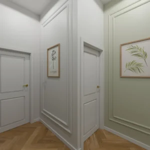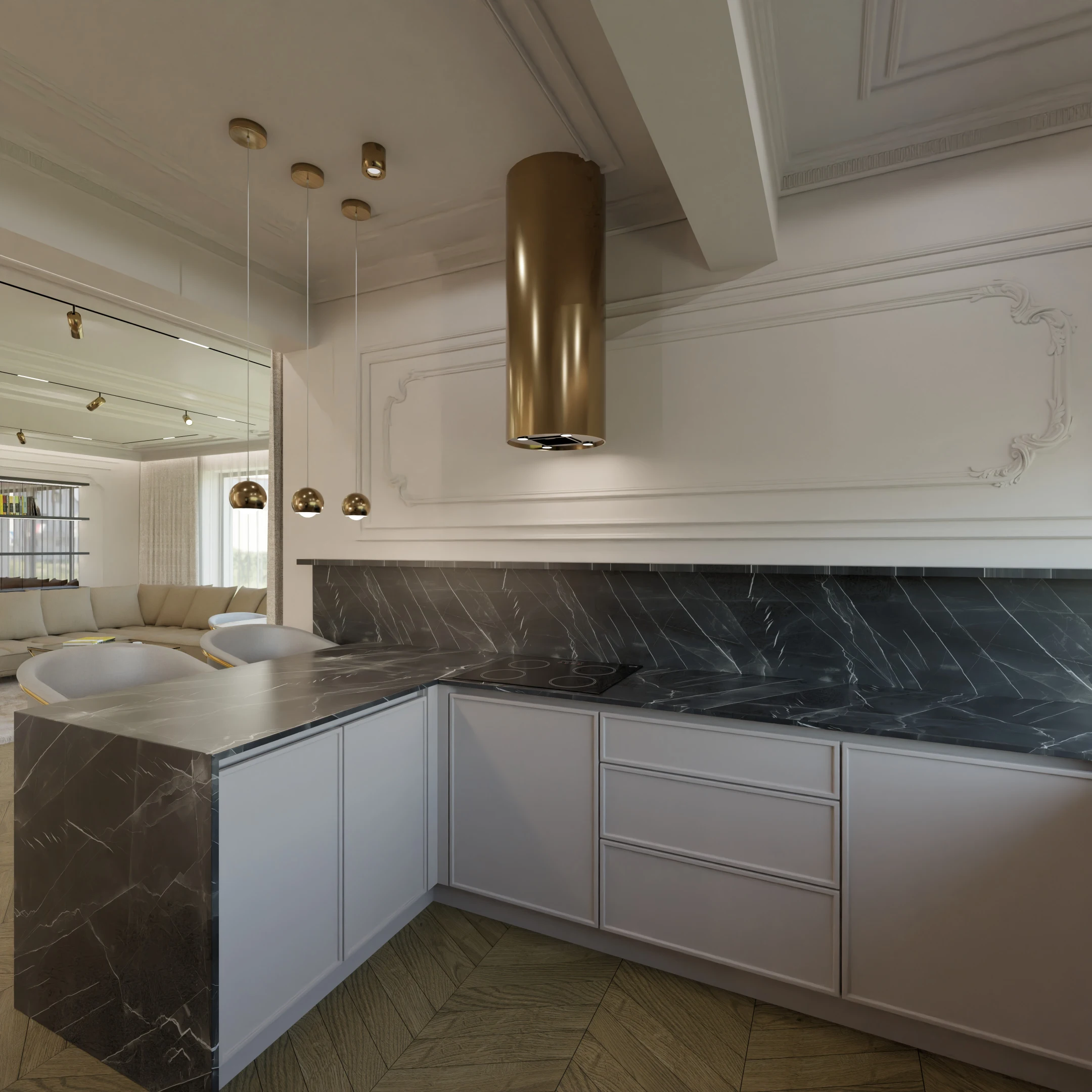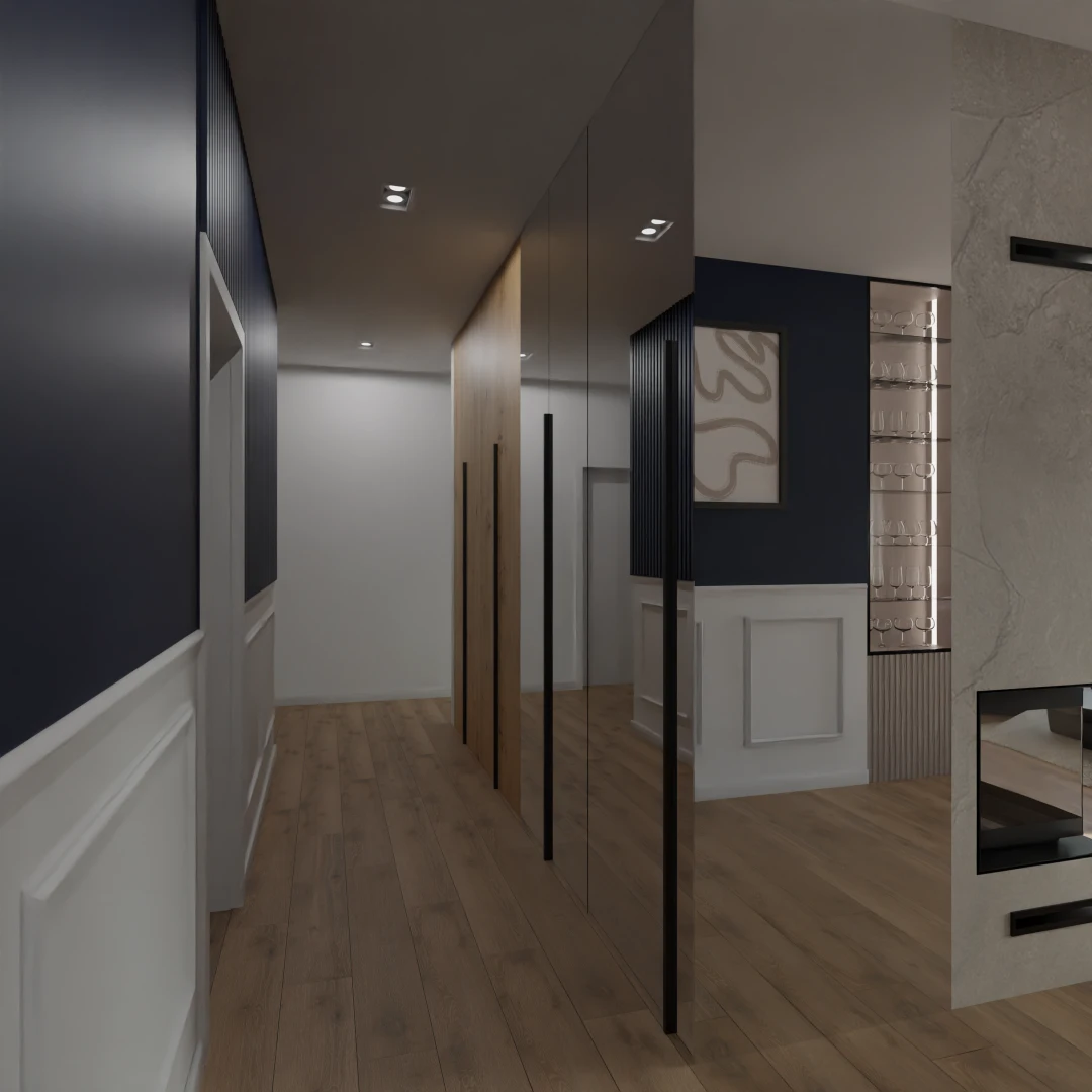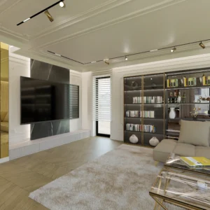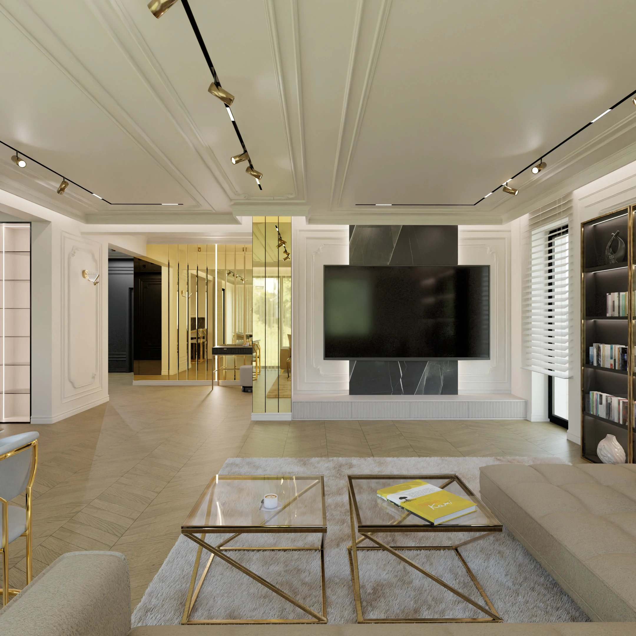 Projekt częsci domu w mieszance stylu klasycnego i glamour