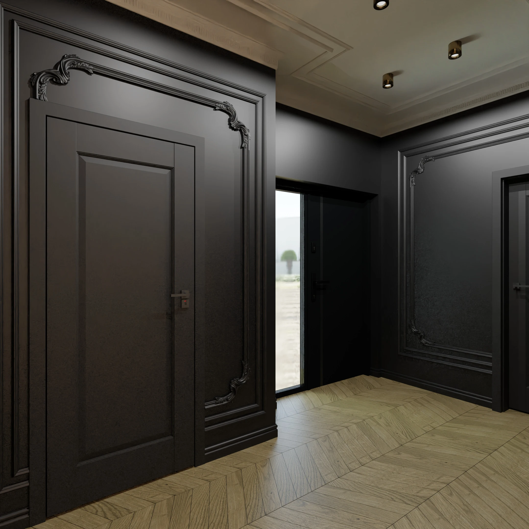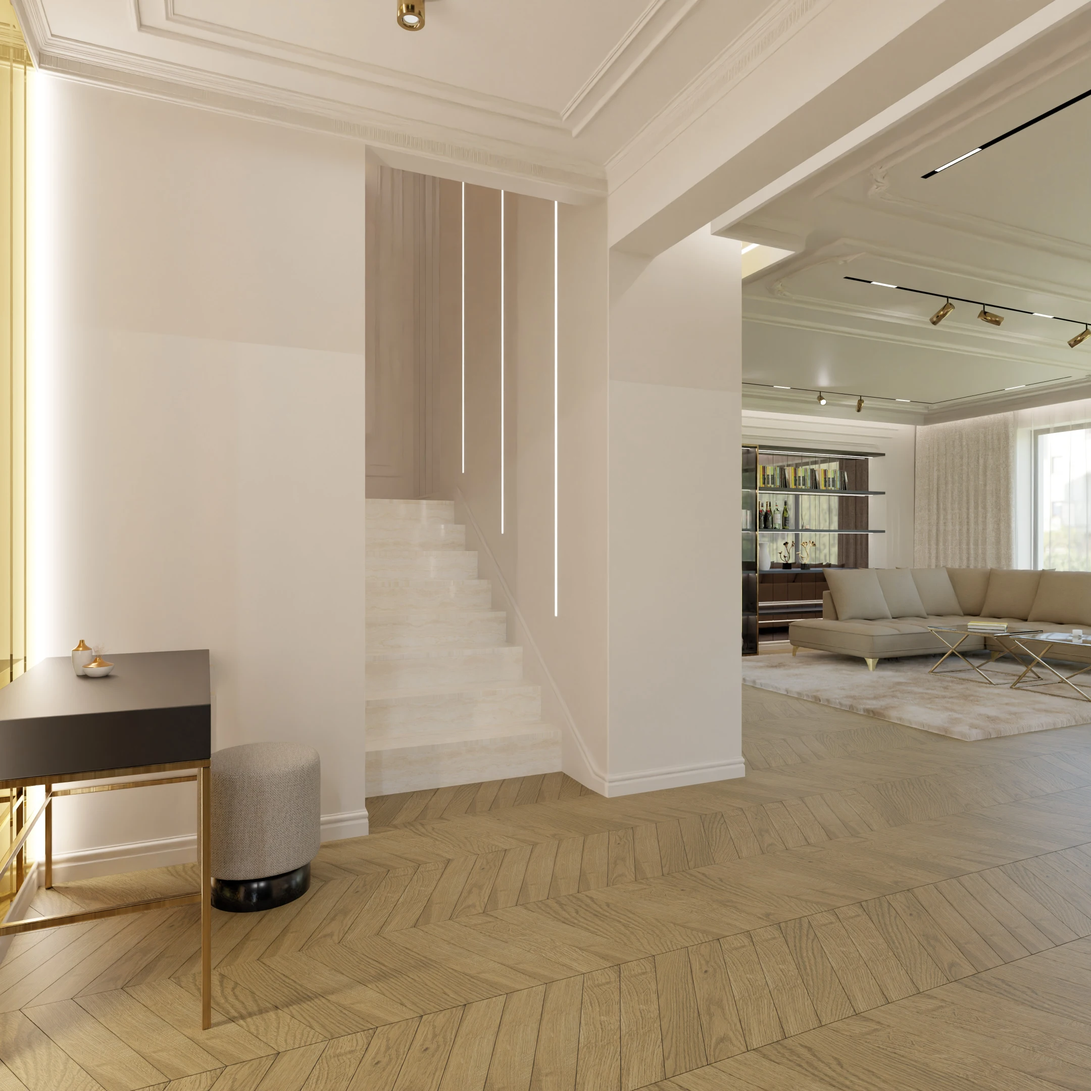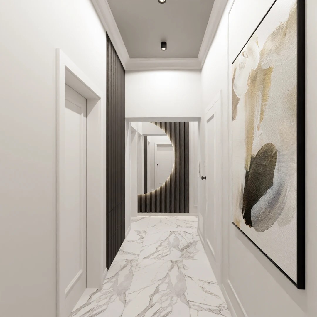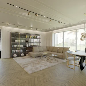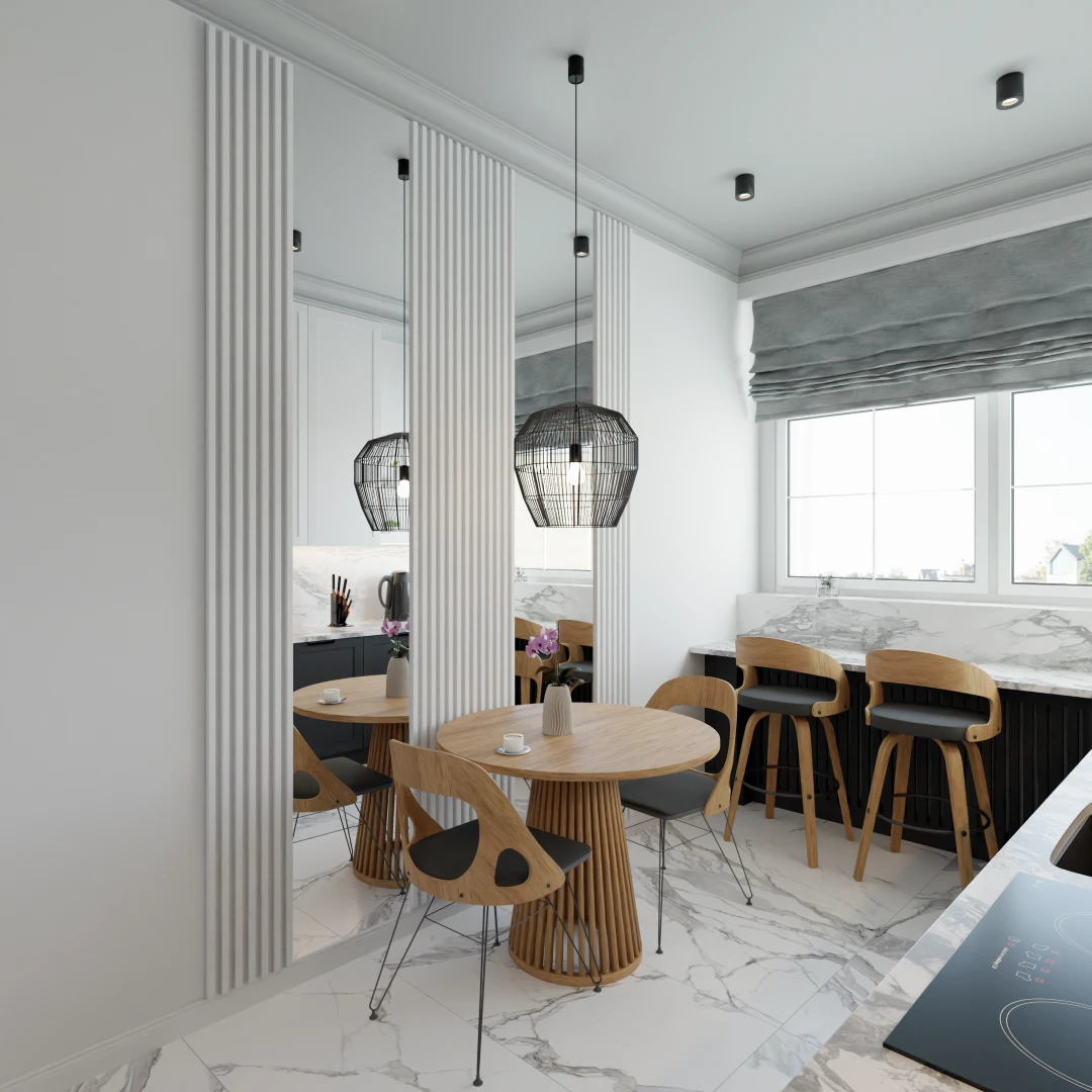 Projekt częsci domu w mieszance stylu klasycnego i glamour