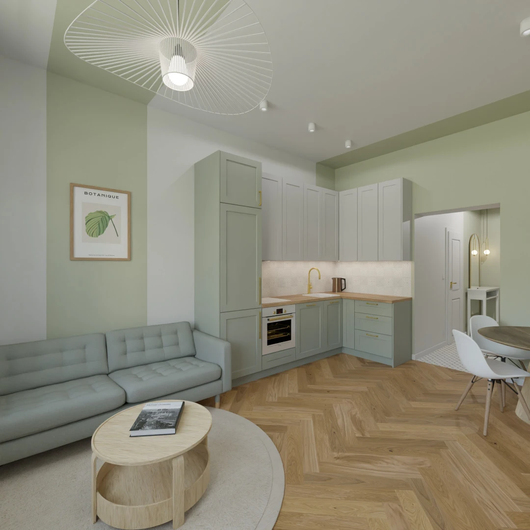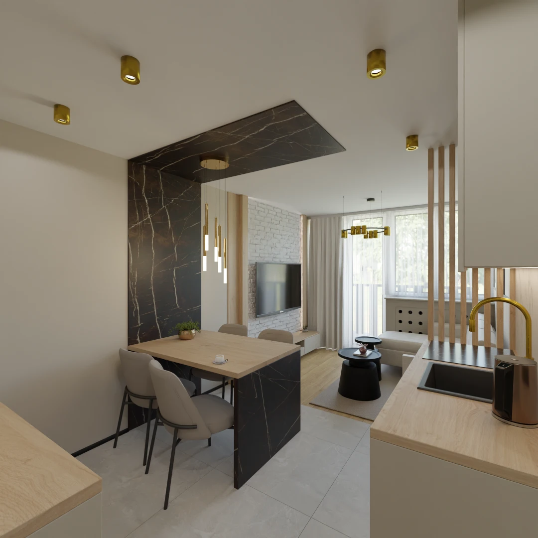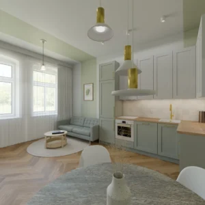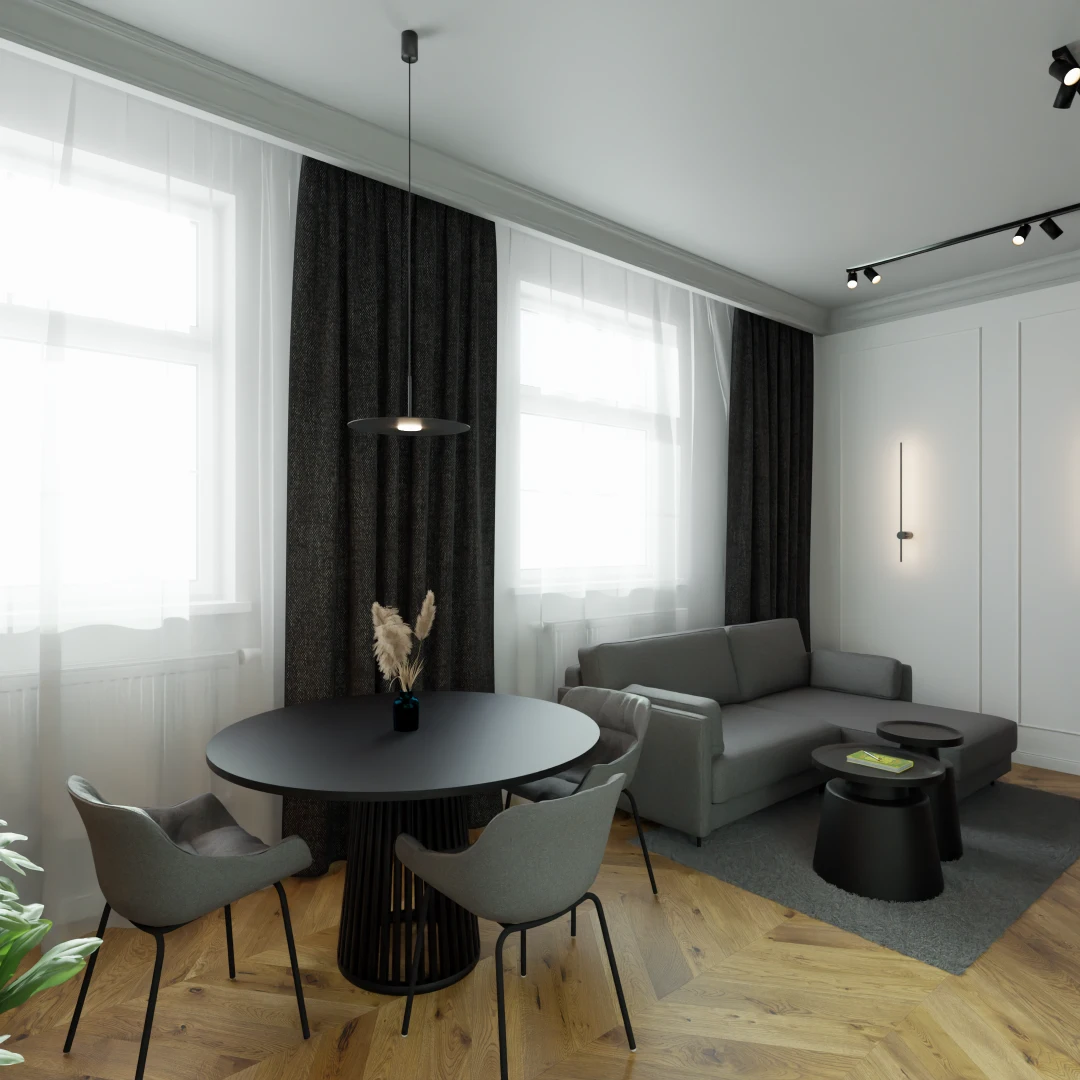 Projekt mieszkania w kamienicy 61m2