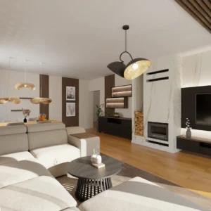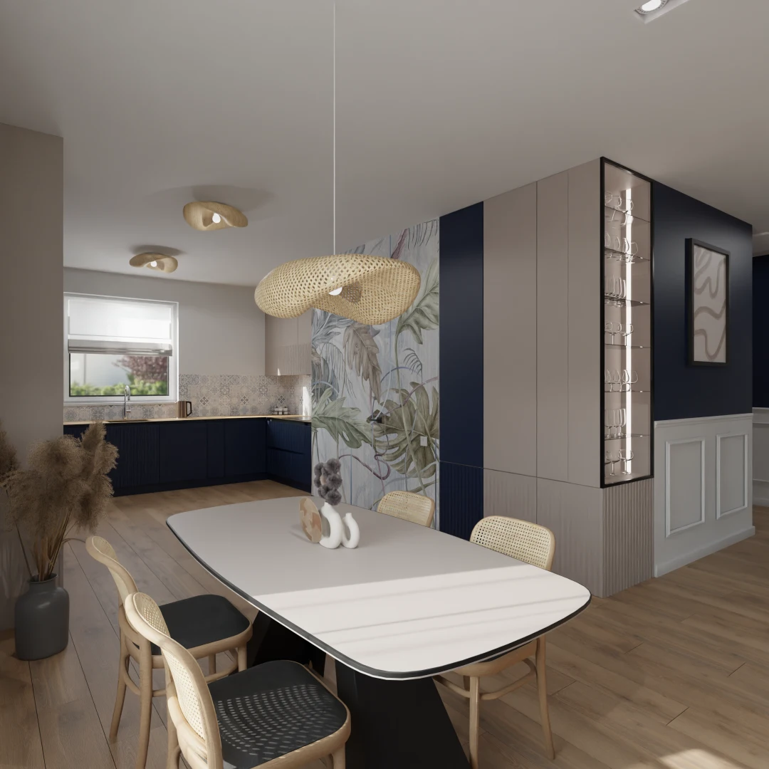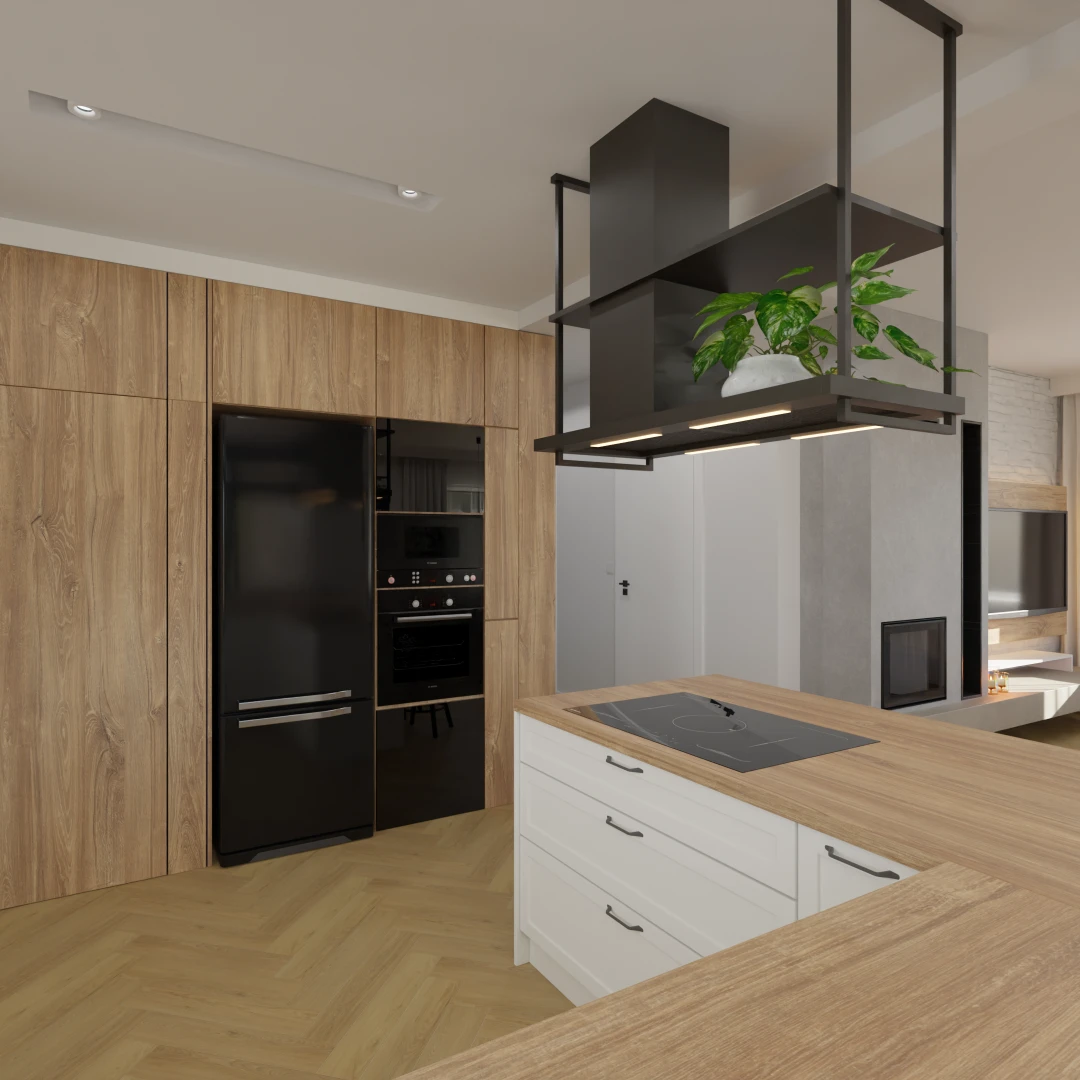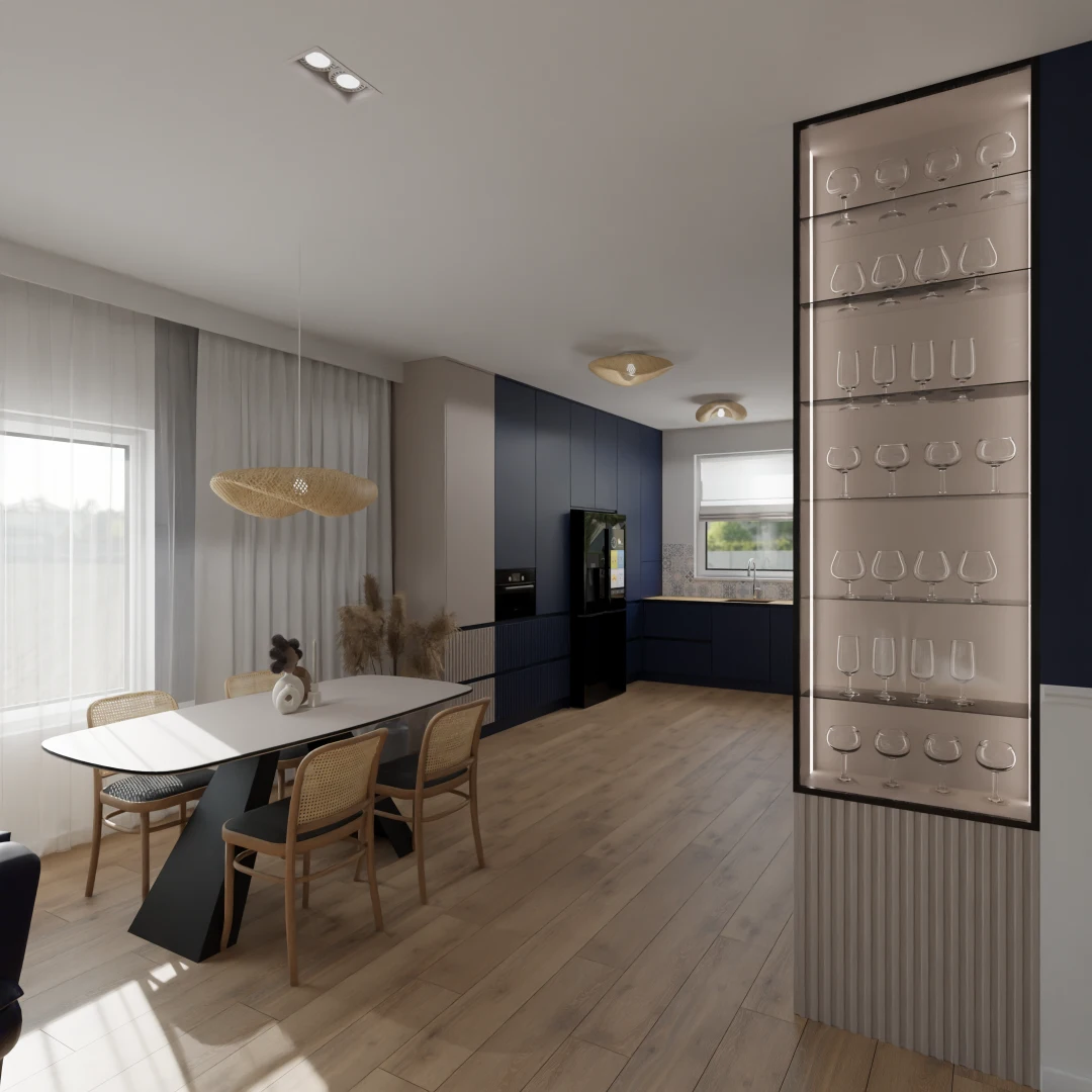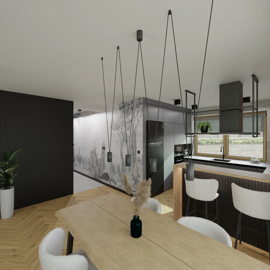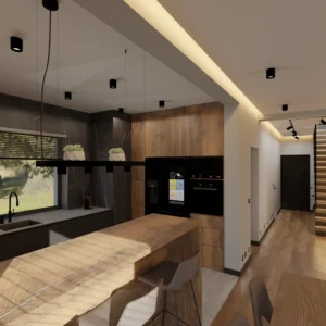 Projekt częsci domu (salon, jadalnia, kuchnia, łazienka)