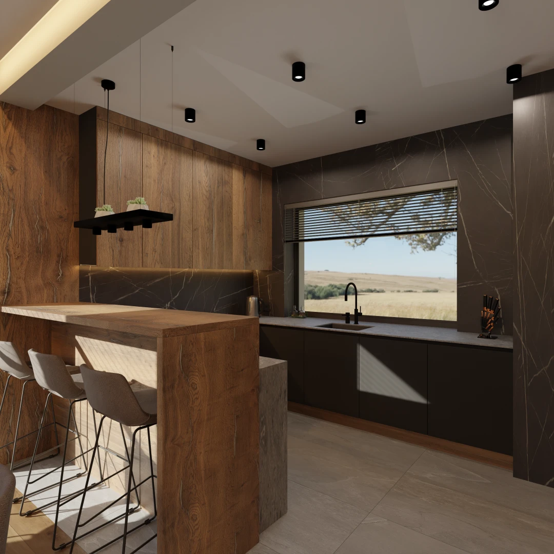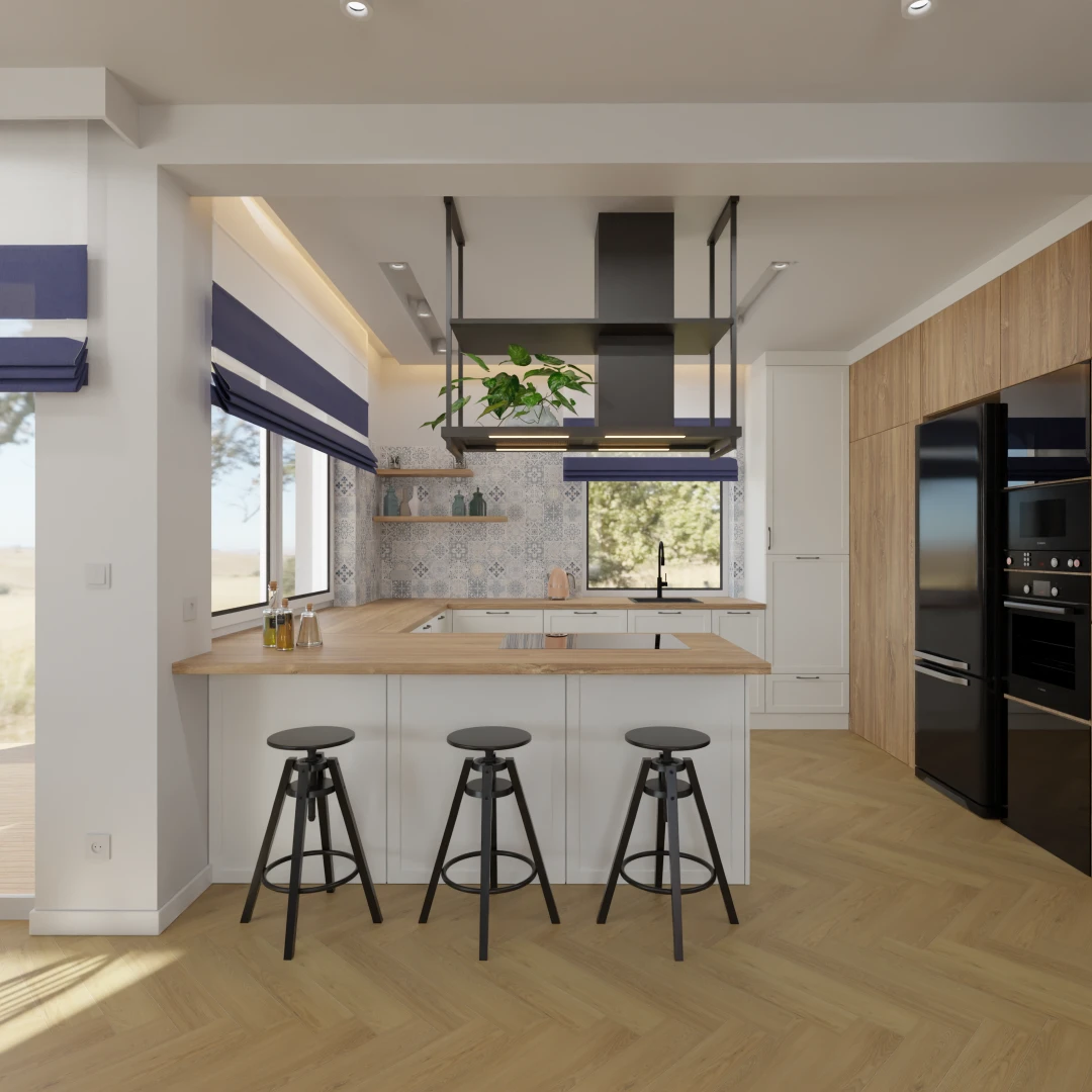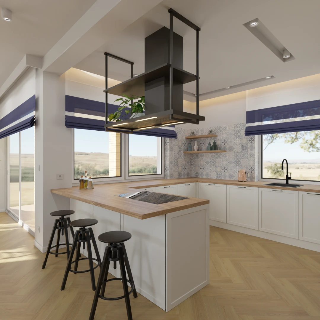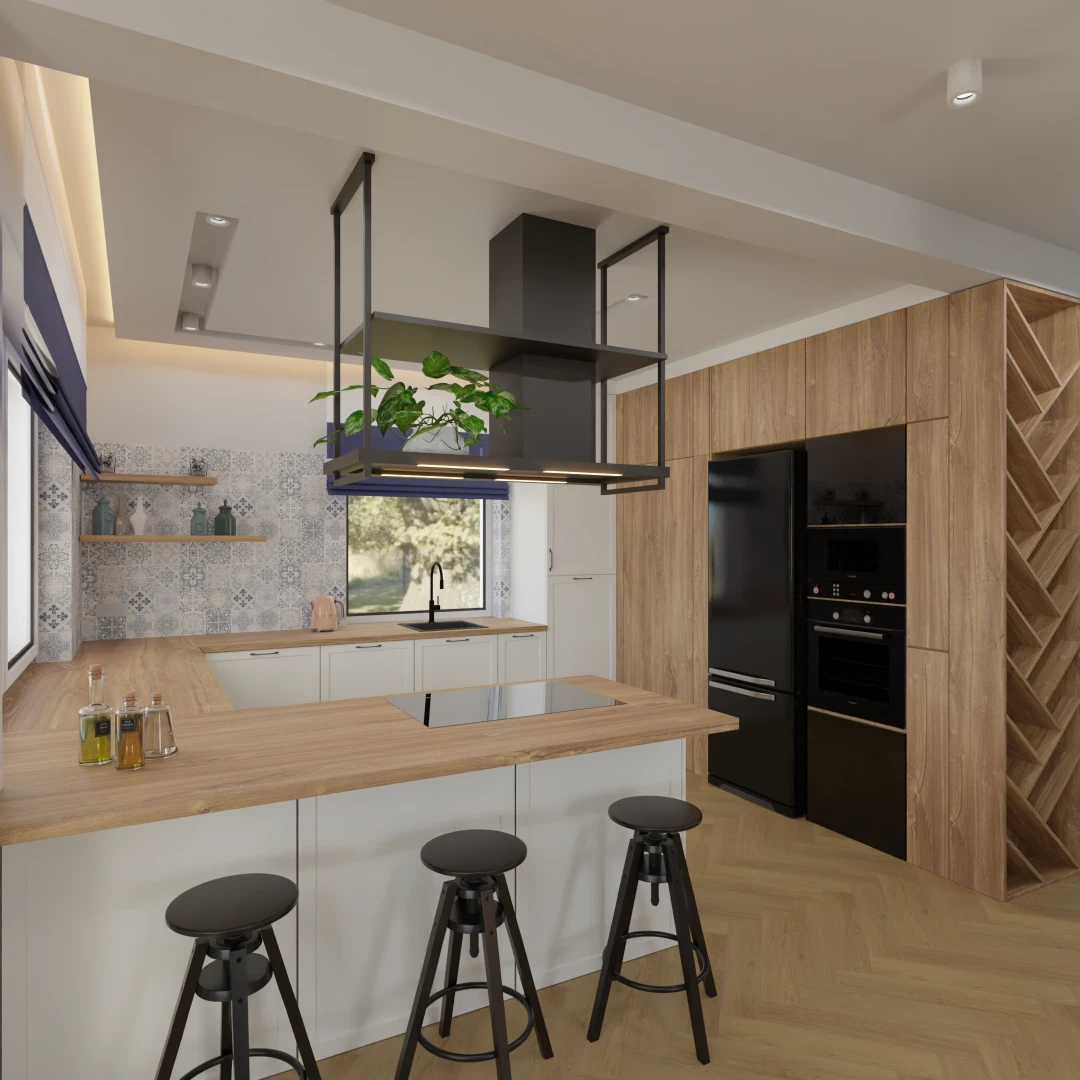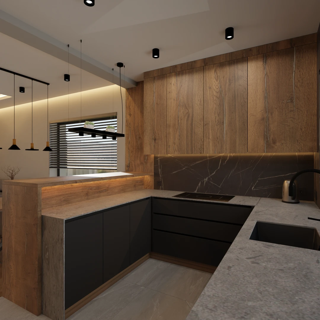 Projekt częsci domu (salon, jadalnia, kuchnia, łazienka)