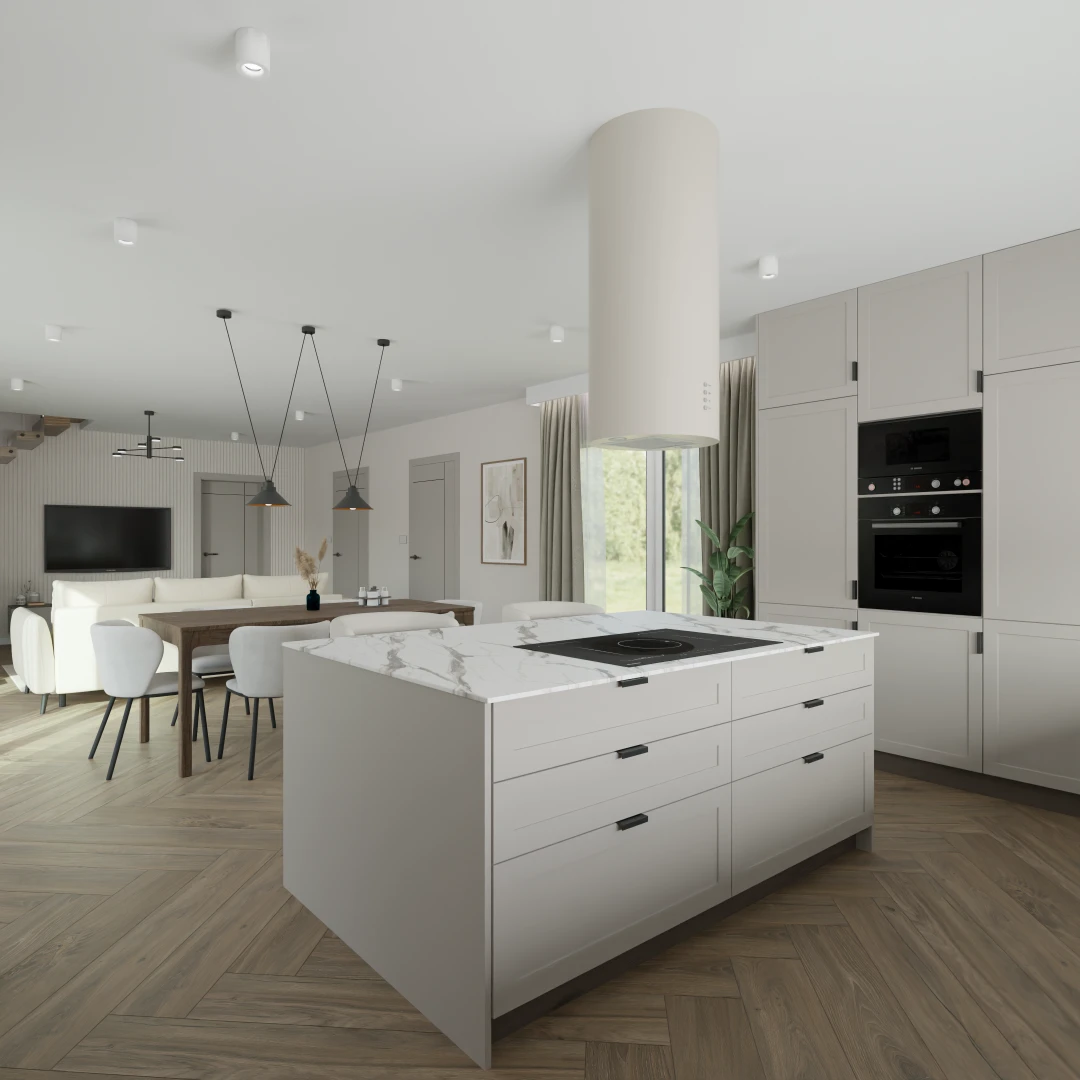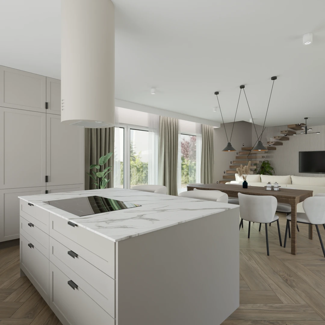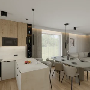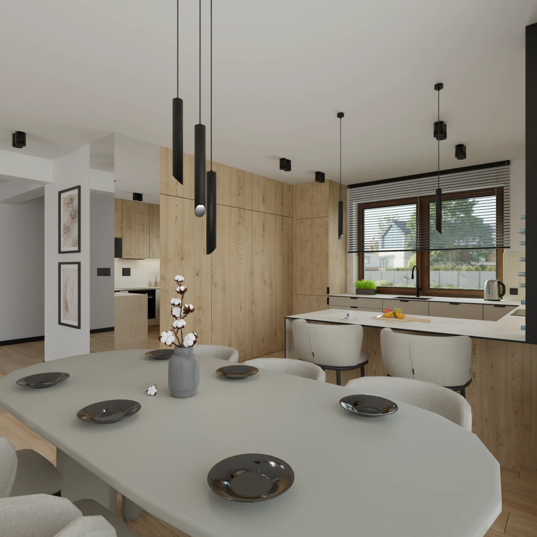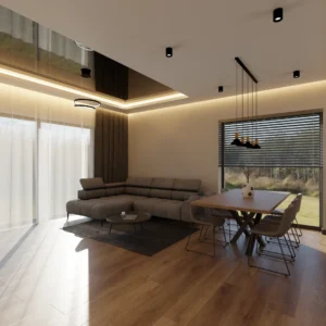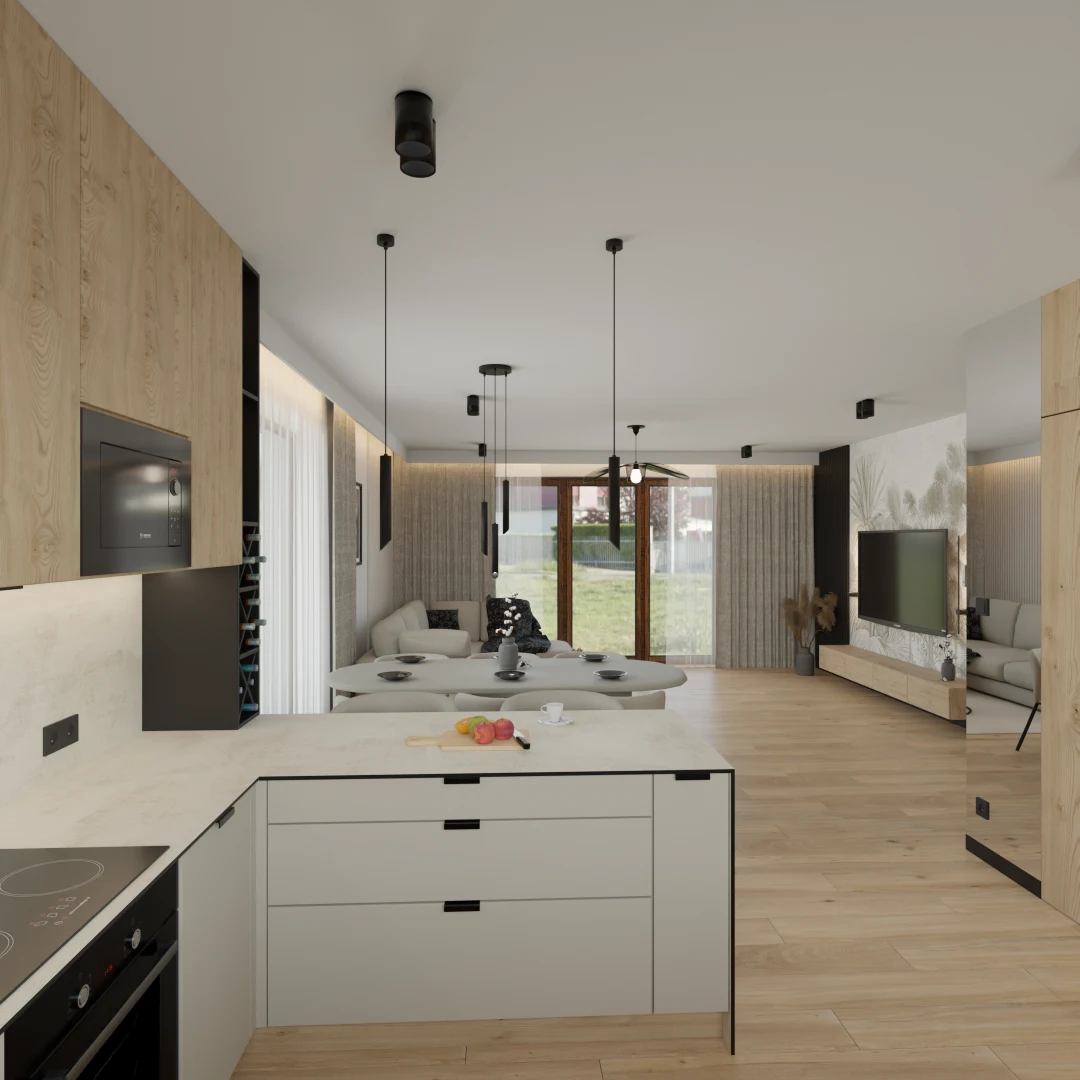 Projekt Części nowego domu Salon z jadalnia i kuchnią