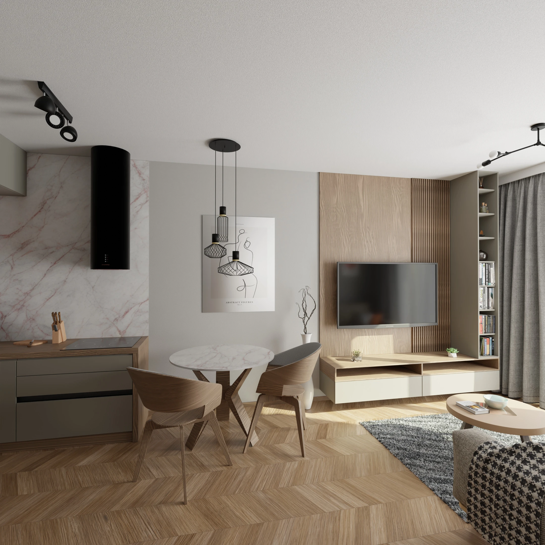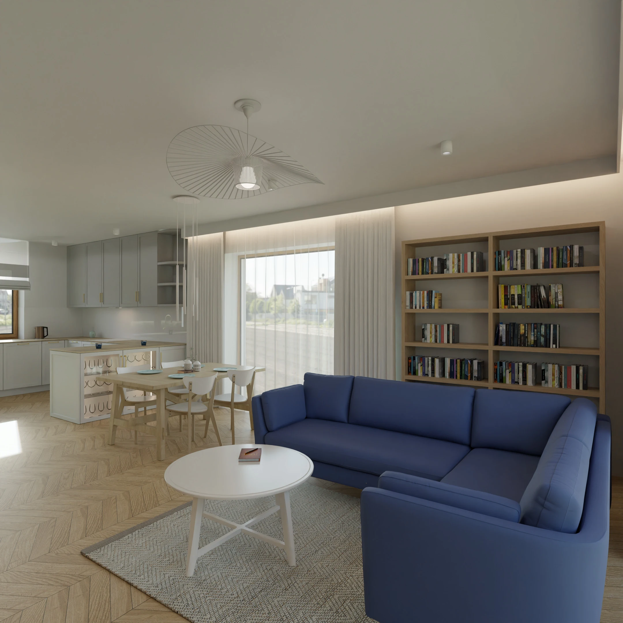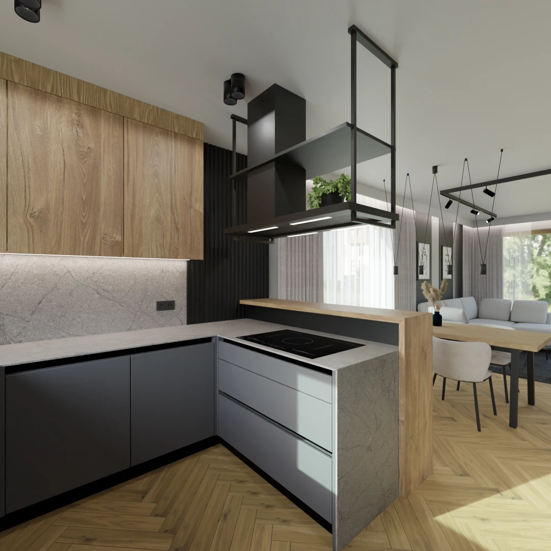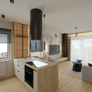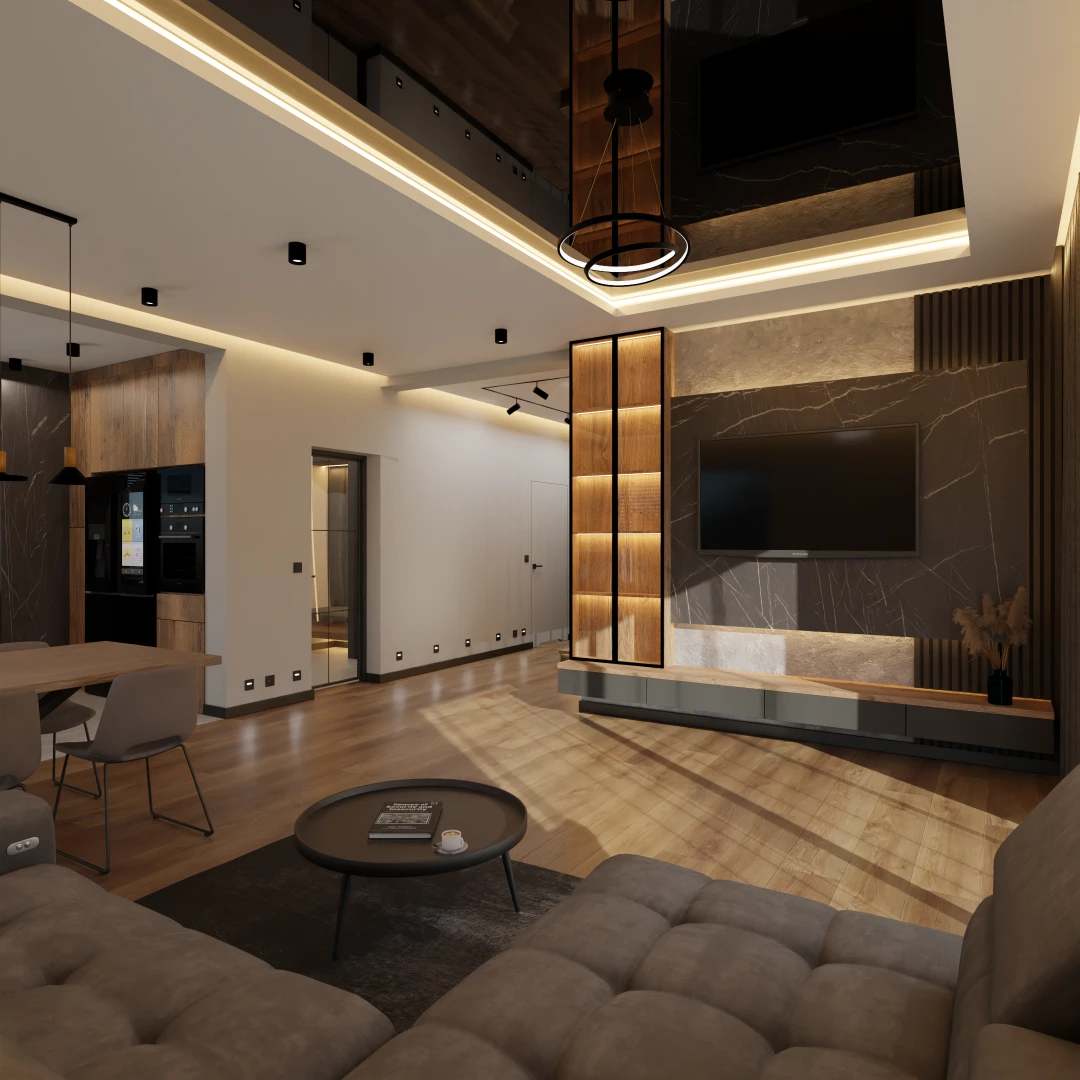 Projekt Części nowego domu Salon z jadalnia i kuchnią