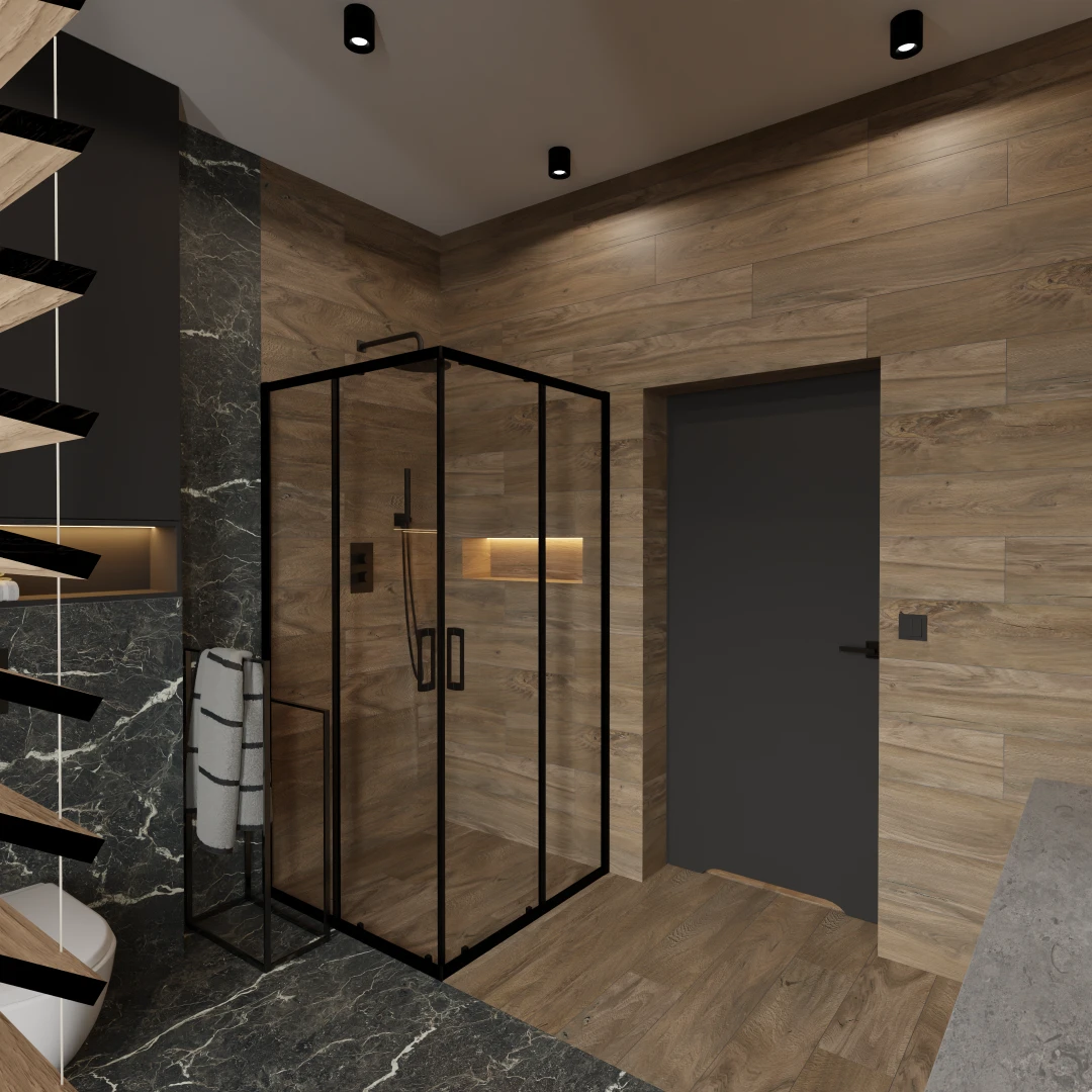 Projekt domu jednorodzinnego Projekt obejmował parter wraz z z łazienką na poddaszu