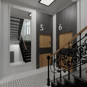 Projekty parteru kamienicy Częsci wspólne + 6 małych mieszkań z przeznaczeniem na wynajem
