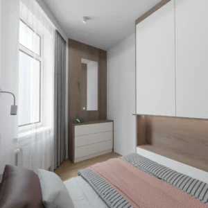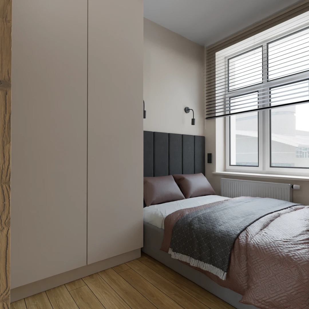 Projekt mieszkania w starym bloku 44m2 przeznaczonego na sprzedaż w wersji ekonomicznej z ukrytą garderobą​
